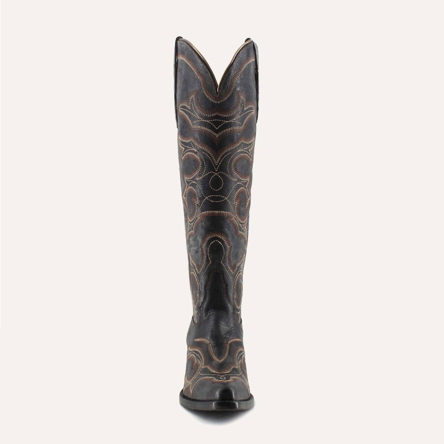 Uma bota estilosa com ajuste confortável e altura ideal. Estas botas clássicas são o complemento perfeito para qualquer look e podem ser usadas em qualquer estação. Entre na sofisticação com as Botas Cowgirl Olivia de Couro da Buck & Brana, projetadas para elevar o seu look com inspiração western. Esta bota alta de inspiração vintage, em preto clássico, apresenta costuras western intrincadas e um acabamento envelhecido, combinando perfeitamente com um bico fino para um toque de elegância. Com um salto bloco ousado, estas botas são ideais para festivais de música ou qualquer ocasião de verão em que você queira se destacar. Feitas para mulheres adultas, elas combinam facilmente o charme tradicional com o estilo moderno.