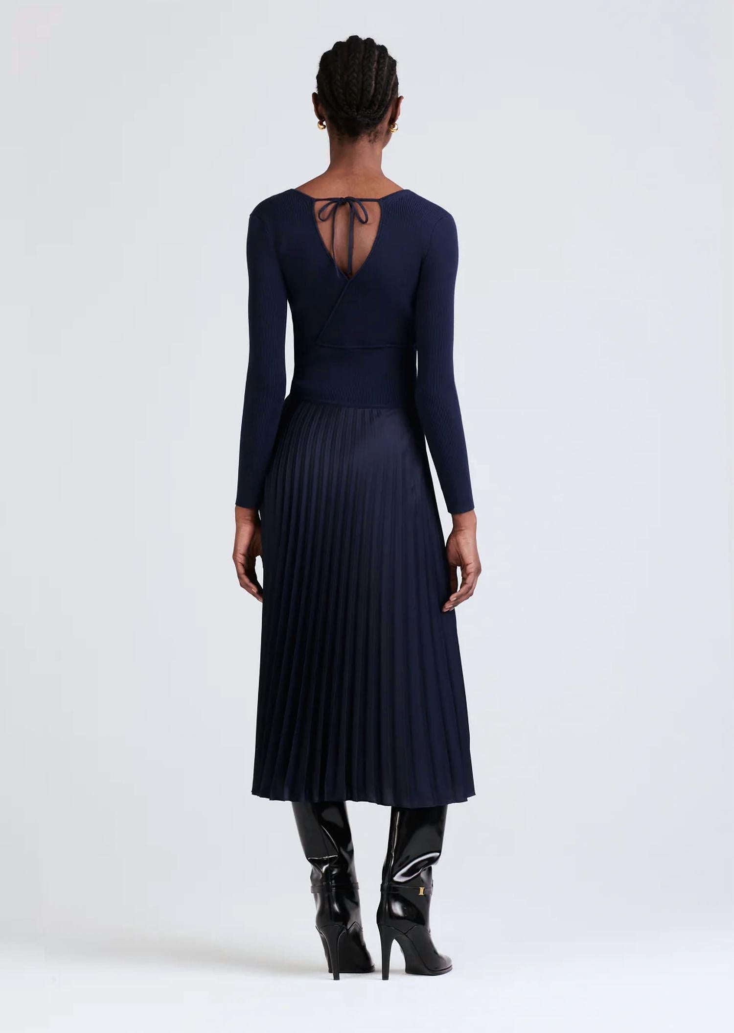 Basta adicionar chinelos ou mules e pronto. Apresenta silhueta envolvente plissada, mangas compridas e saia midi. Tamanho real. A modelo veste tamanho P. 62% Viscose 38% Poliéster. Combinação: 97% Poliéster 3% Elastano.