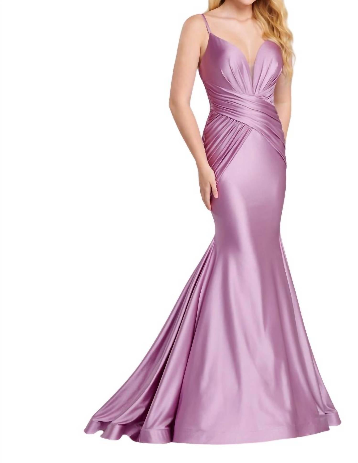 Procurando o vestido de festa perfeito? Não procure mais... Com um decote em V profundo e cintura natural, o vestido é realçado por um detalhe cruzado nas costas e uma ousada fenda alta na coxa. A saia rodada flui lindamente com uma bainha estruturada de crina de cavalo, adicionando movimento e estilo dramáticos — perfeito para qualquer evento noturno glamoroso.