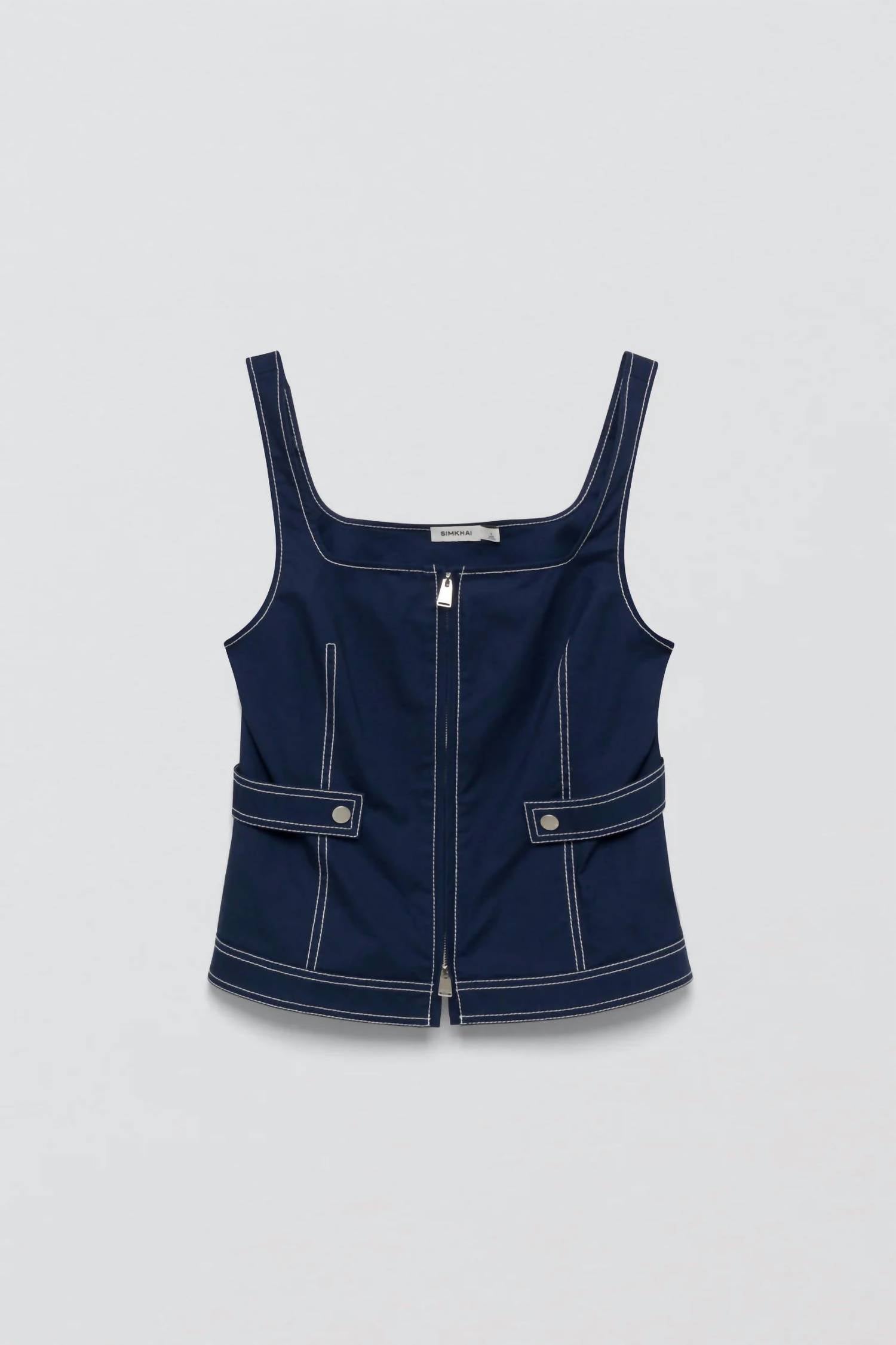 Esta regata clássica é perfeita para usar em camadas e é fofa o suficiente para ser usada sozinha. Este modelo sem mangas com zíper exala elegância contemporânea com seu design elegante e silhueta estruturada. O zíper frontal adiciona um toque moderno, enquanto o corpete justo e o decote quadrado destacam um corte elegante. Lavar somente a seco. 98% algodão, 2% elastano. Importado.
