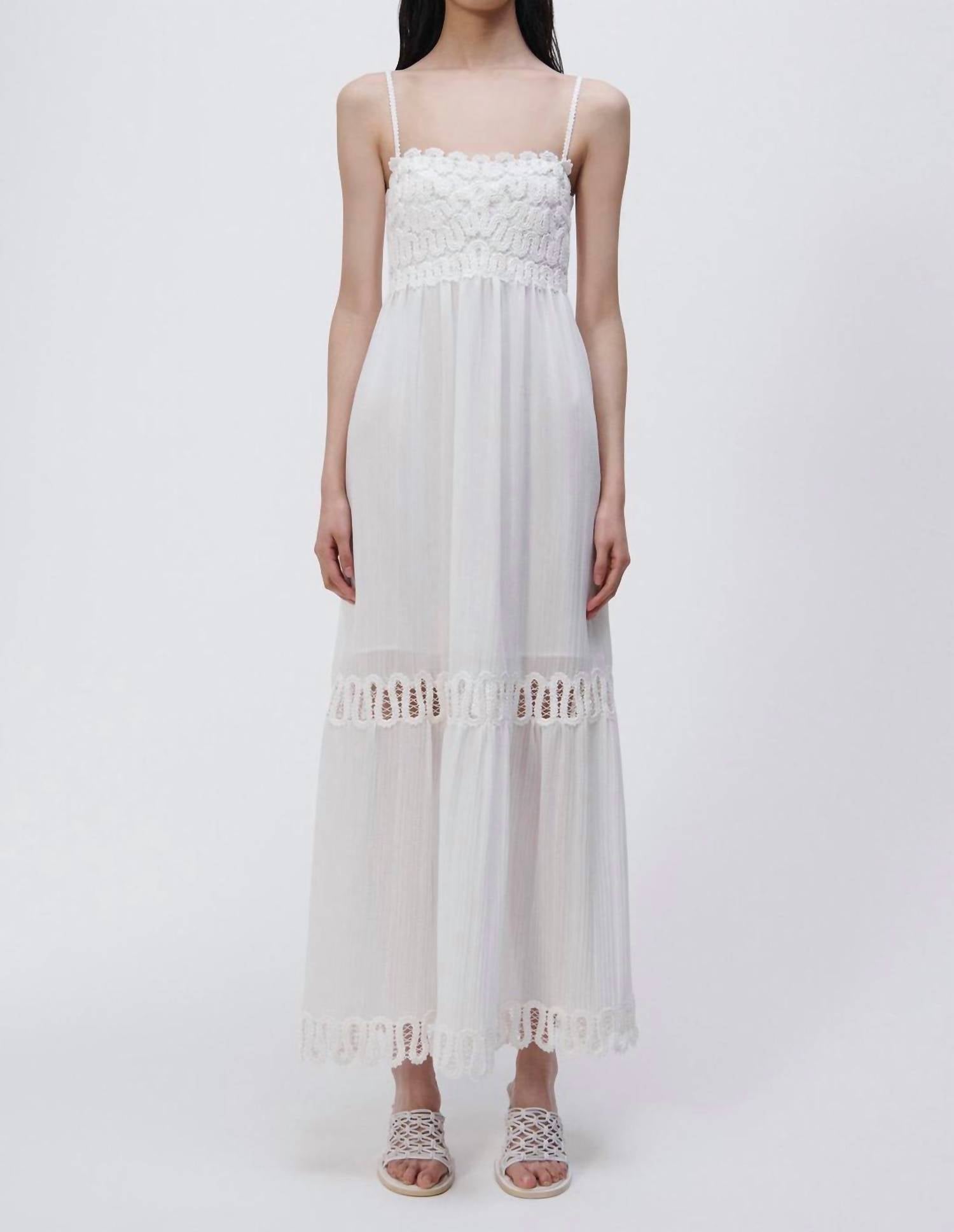 Combine este maxi com seu colar e sandálias favoritos para o look perfeito. Modelo longo, leve e arejado, com camadas de bordados em crochê com motivos geométricos de gaiola. Zíper lateral oculto. Alças ajustáveis. A modelo tem 1,80 m e veste tamanho 2. Lavagem a seco somente.