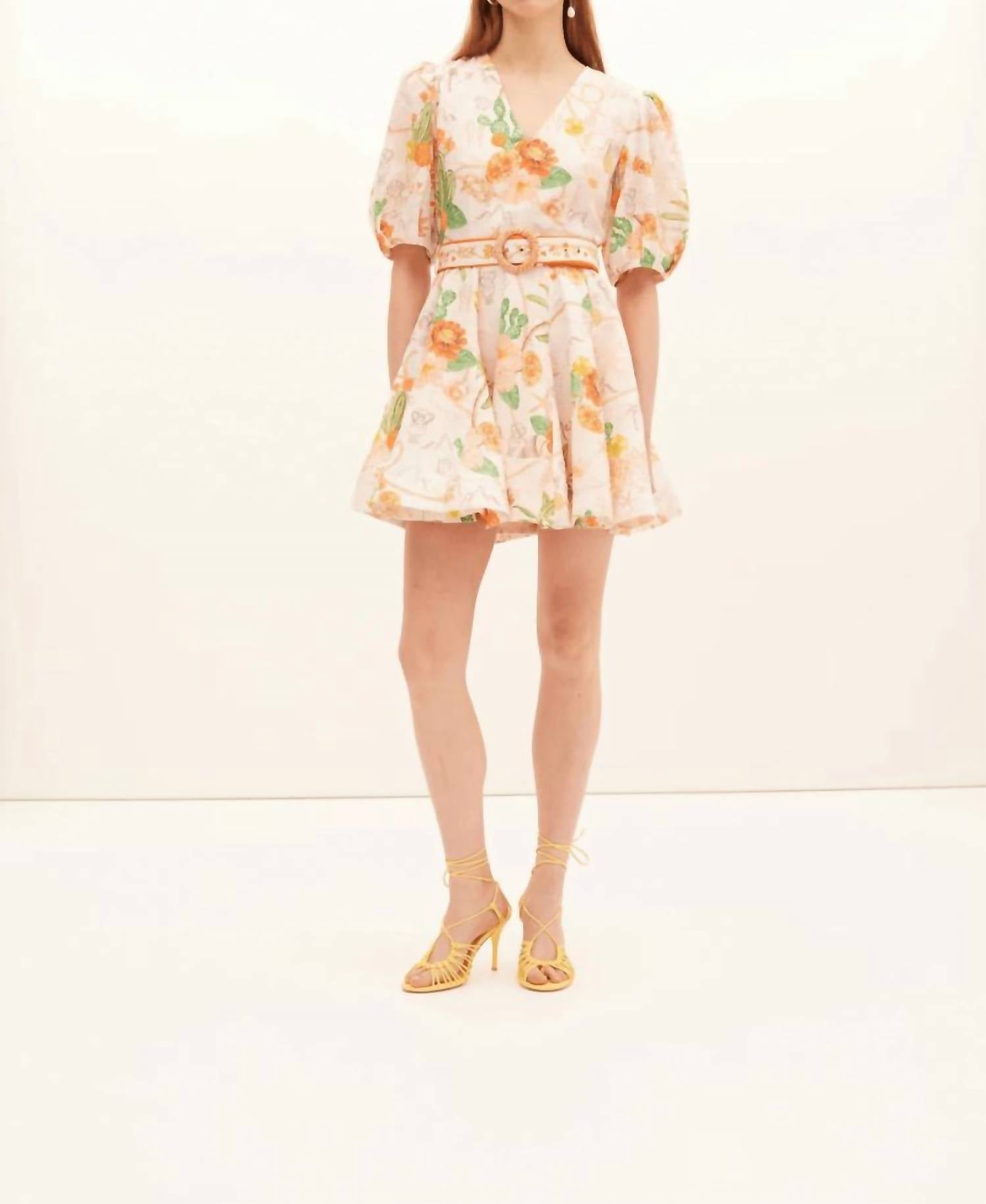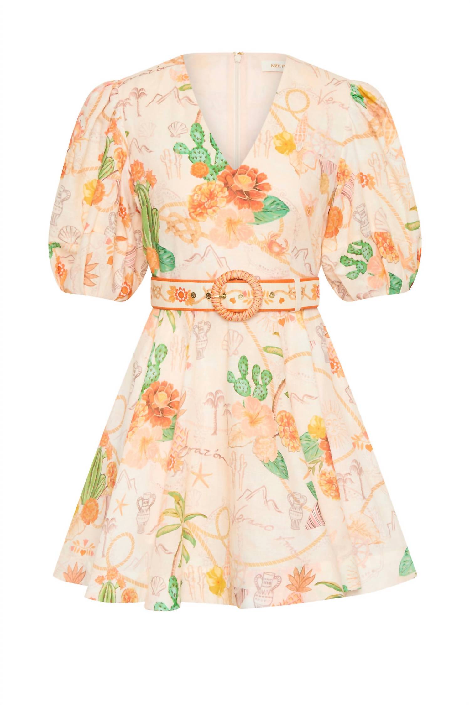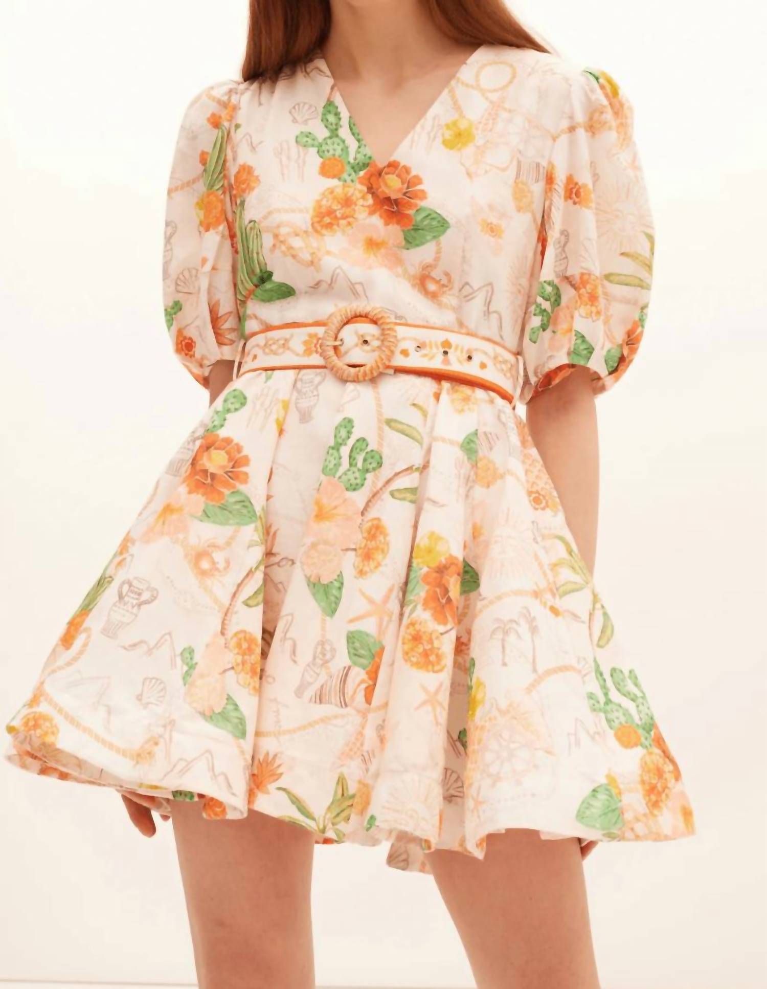 O tipo de vestido fácil e elegante que você vai usar durante toda a estação. Apresentamos o Vestido Tacana Plunge de Kate Ford, uma escolha sofisticada para as festividades de primavera. Este vestido apresenta mangas curtas bufantes e um corte elegante e silhueta evasê, tudo com a charmosa estampa floral Ines. Confeccionado em uma luxuosa mistura de linho, apresenta decote em V justo e cinto estampado com ilhós dourados e fivela multicolorida. Fechamento: Sem cadarço. Cuidados: Lavar à máquina. Perfeito para um jantar de Ação de Graças, este minivestido incorpora as tendências do Y2K.