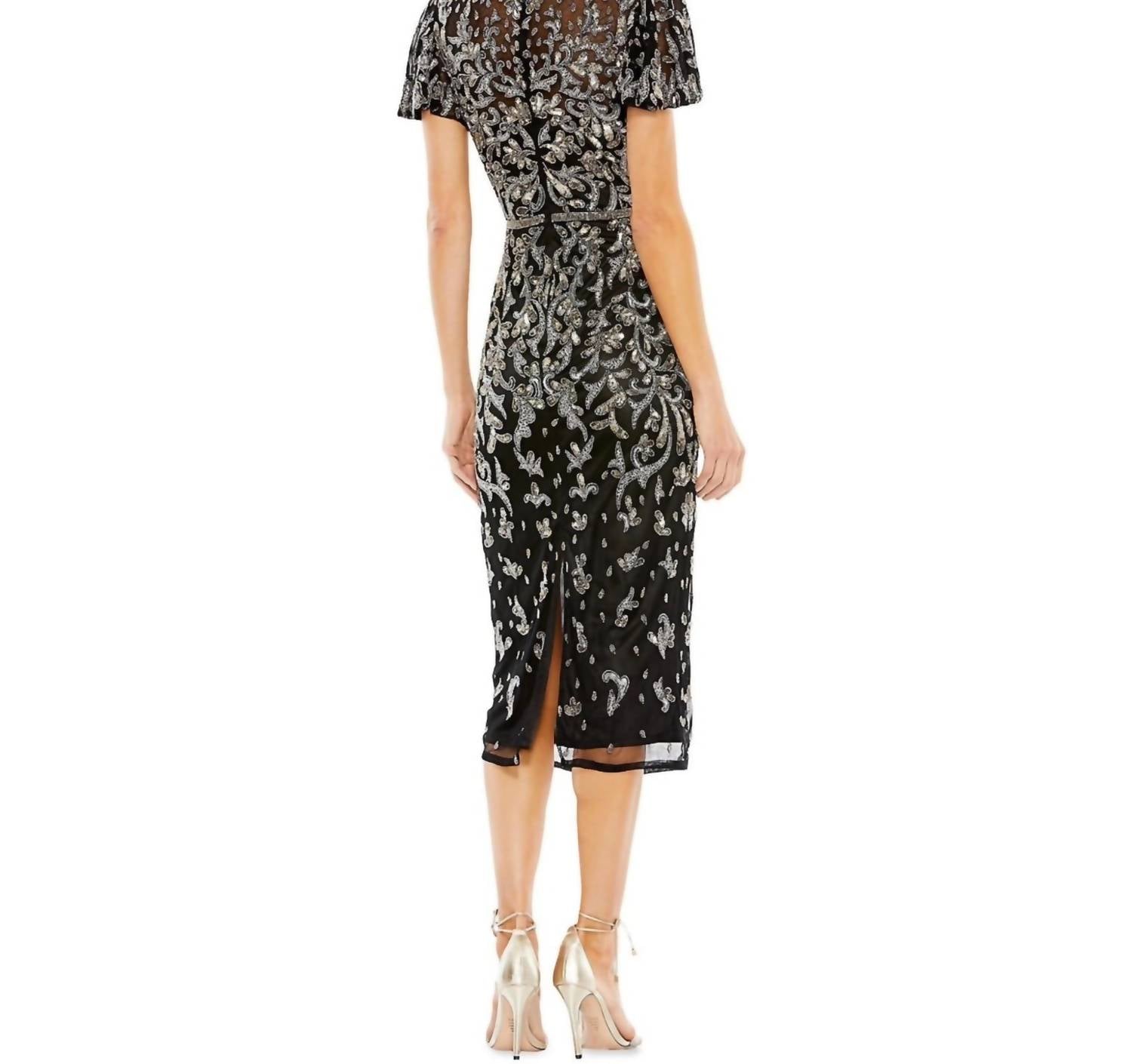 Um vestido midi tão versátil que suas opções de uso são infinitas. Eleve seu guarda-roupa de primavera com o Vestido com Decote em Joia e Contas da Mac Duggal, um deslumbrante vestido midi preto adornado com brilhantes cristais. Esta peça apresenta um decote em joia diferenciado e mangas curtas, confeccionada inteiramente em 100% poliéster. O vestido oferece um caimento perfeito, com cintura de 68 cm e comprimento de 43 cm de cava a cava, com cerca de 122 cm do ombro à bainha. Importado e com fecho de zíper nas costas, este vestido foi criado para oferecer estilo e praticidade.