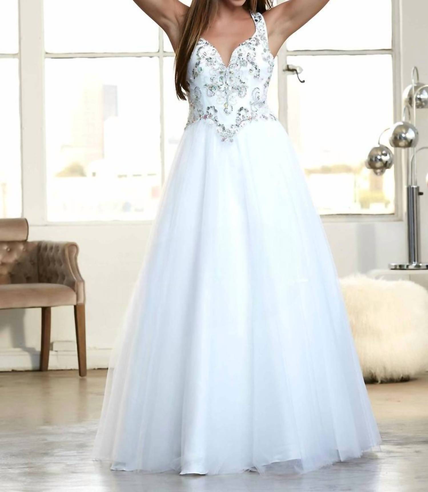 Apresentamos o Vestido de Baile Halter da Mac Duggal, uma escolha requintada para o baile de formatura em um sofisticado tom branco/prateado. Este vestido sem mangas apresenta um corpete com contas e um elegante decote halter, perfeito para uma entrada memorável. Confeccionado em corte A, possui um prático fecho de zíper para facilitar o uso. Sem bolsos, este vestido é uma adição atemporal ao seu guarda-roupa formal.