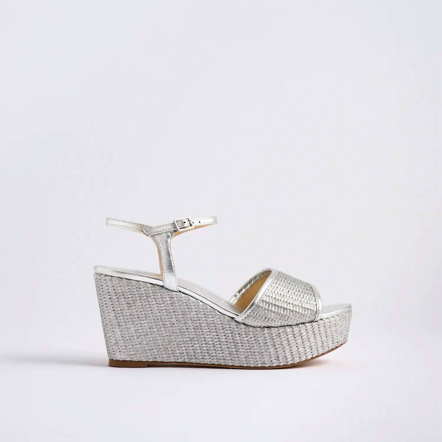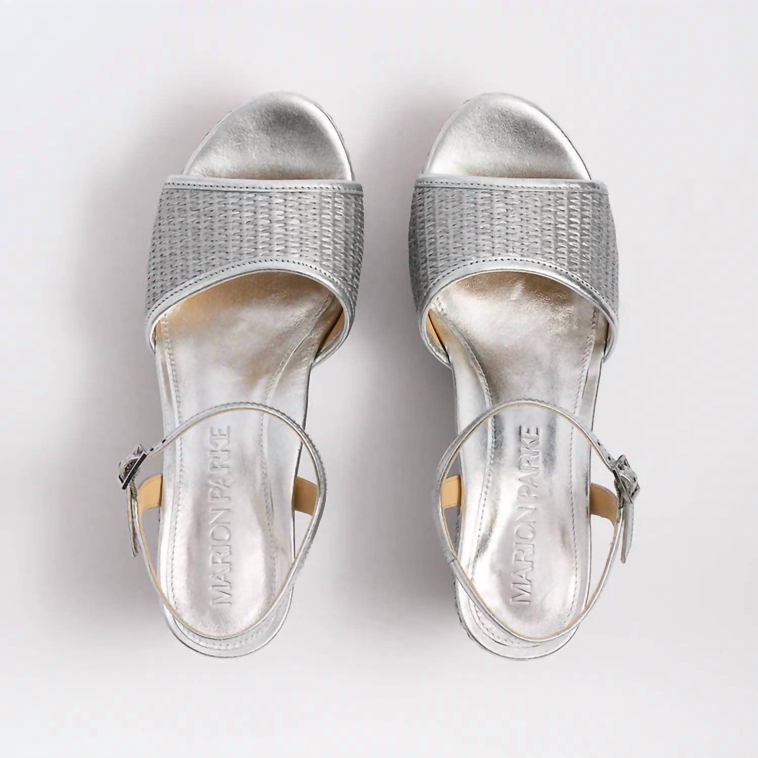 Vestidos, jeans, shorts... essas plataformas combinam com quase tudo. Descubra a sandália Marion Parke Haven Wedge Feminina na deslumbrante cor Prata Metálico, uma combinação perfeita de estilo e conforto para qualquer ocasião. Confeccionadas com extremo cuidado no Brasil, estas sandálias apresentam salto anabela de 70 mm (2,8 polegadas) e passo de 50 mm (2,0 polegadas) para um visual elegante e sofisticado. Desenhadas com bico aberto e ferragens elegantes no tornozelo, elas destacam a palmilha invisível duplamente patenteada que garante conforto o dia todo. Ideal para passeios de verão e jantares, esta luxuosa sandália anabela é uma peça de destaque.