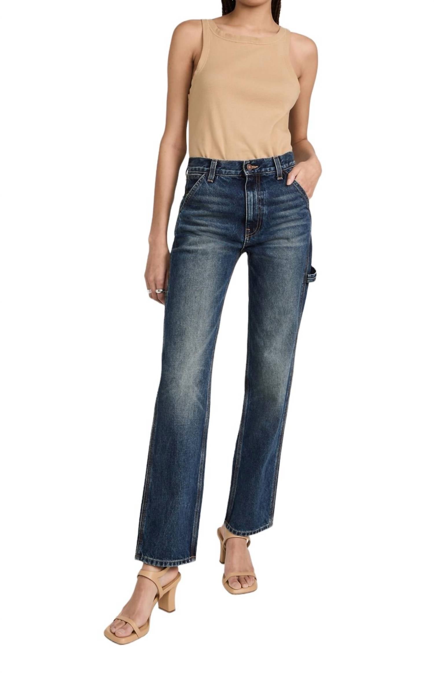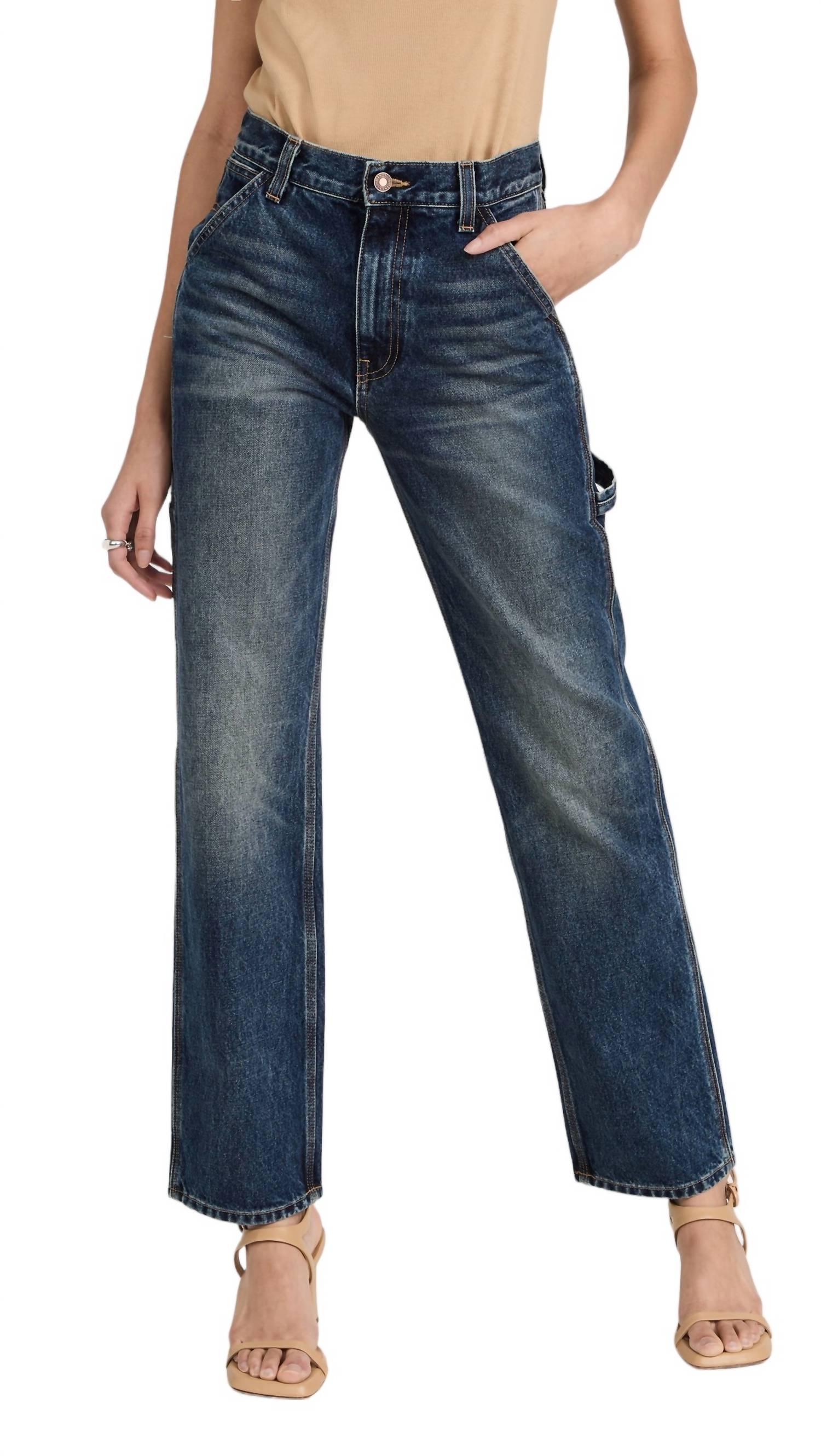 Esta calça jeans longa é confeccionada em denim 100% algodão, resistente e sem elasticidade, garantindo a manutenção do seu formato e caimento ao longo do tempo. O design apresenta desbotamento e ondulação, fecho de botão com braguilha com zíper, bolsos inclinados no quadril e bolsos traseiros aplicados. As medidas para o tamanho 25 são: 25,6 cm de altura, 76,6 cm de costura interna e 39,2 cm de abertura da perna. Lavar à máquina com água fria. Fabricado nos EUA.