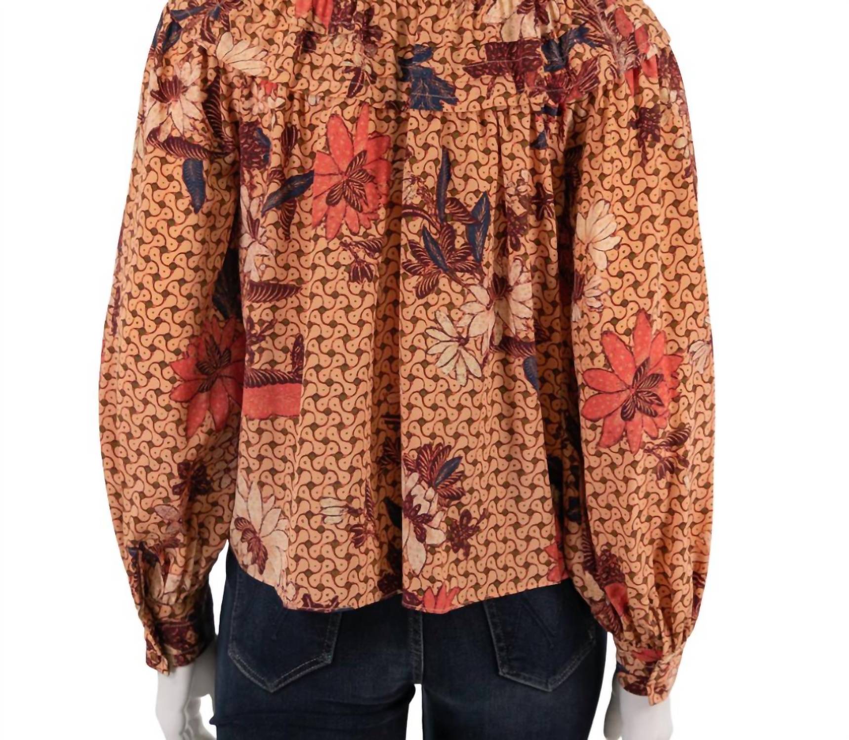 Combine com seus jeans e slides favoritos para sua próxima saída à noite entre amigas. Blusa Ulla Johnson Aria de seda em rosa-jardim Blusa com corpete arejado Motivo floral e estampa geométrica Mangas compridas com punhos abotoados Pala exagerada com babados Decote dividido Botões e laços no pescoço Textura crepe de chine de seda macia Tamanho 4 Medidas 24" Comprimento 23,5" Comprimento da manga 52,2" Busto