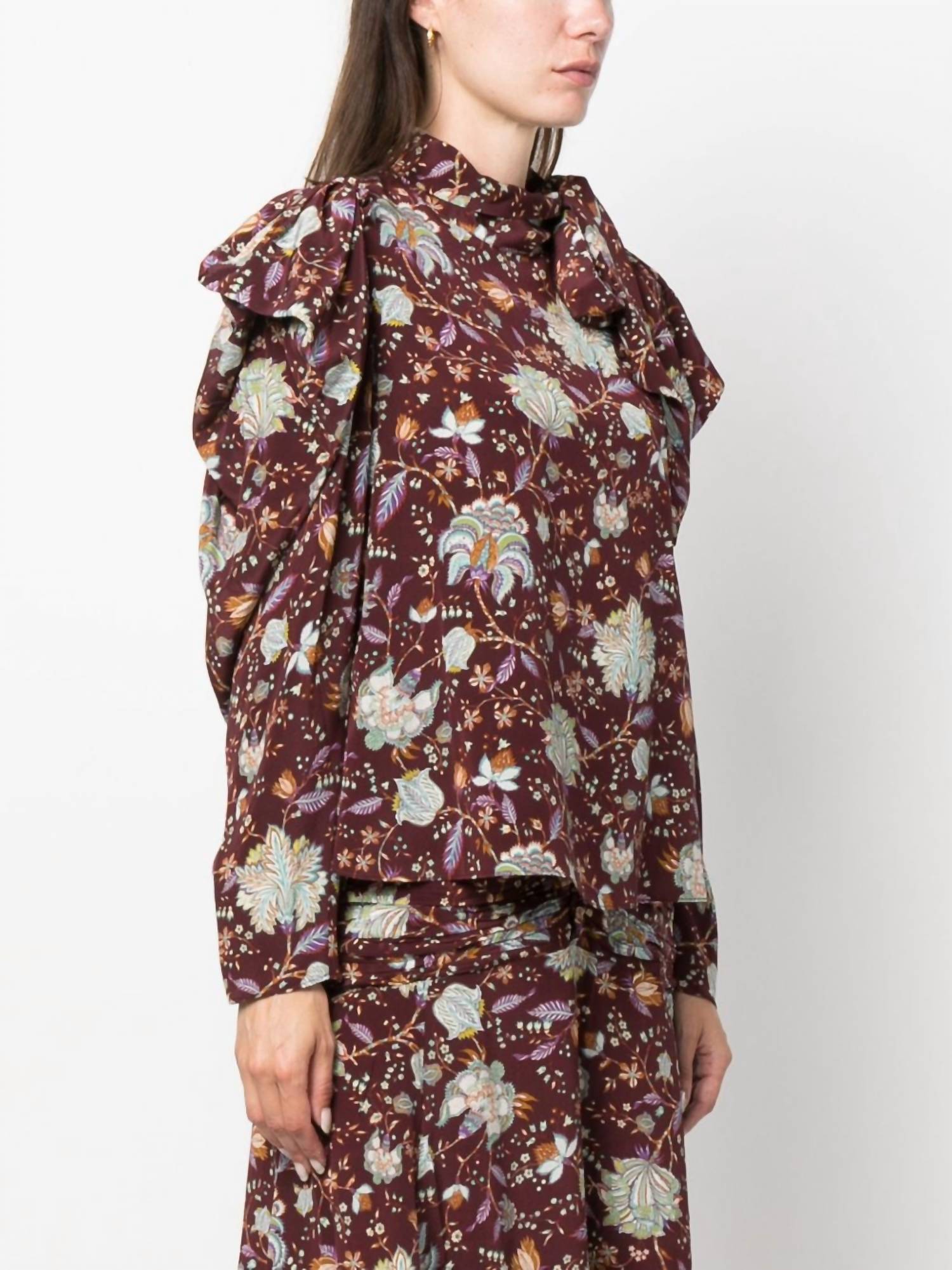 Uma blusa atemporal que nunca sai de moda. 100% seda. Blusa de seda Brea Silk com manga comprida e laço. Tamanho aproximado de 60 cm do ombro à bainha. Estampa floral estampada. Detalhes franzidos. Gola com laço. Gola falsa. Fecho lateral com laço. Mangas compridas. A modelo mede 1,78 m e veste tamanho 2 (EUA).