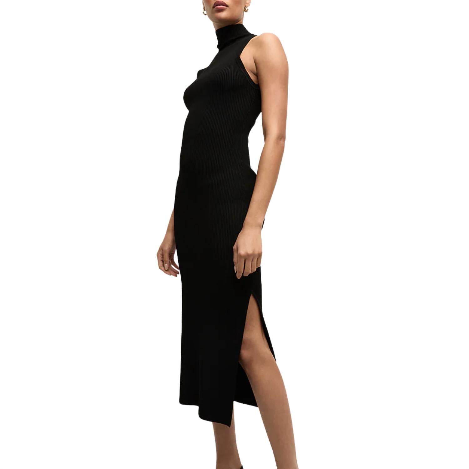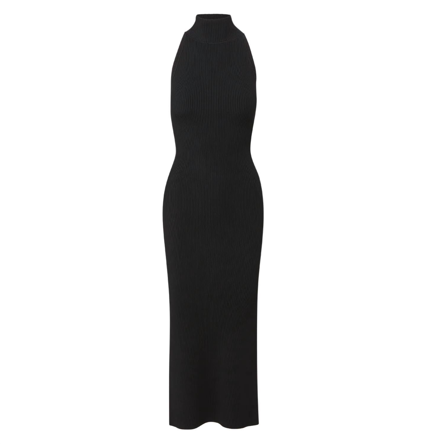 Um vestido midi tão versátil que suas opções de uso são infinitas. Verônica Barba Vestido de malha Briggita Halter Viscose, Poliéster em Preto Vestido longo Malha elástica macia Halter de gola alta Silhueta de contorno corporal Tamanho S comprimento 48,2" Fiel ao tamanho Lavagem a seco