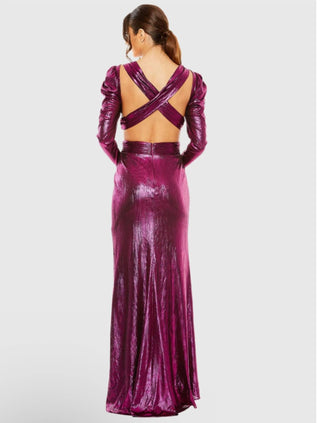 Mac Duggal - Vestido metálico com manga princesa e recortes