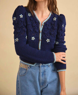 Autumn Cashmere - Puff Sleeve V Sweater With Contrast Embroidery