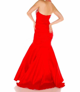 Mac Duggal - Vestido de sereia com decote halter e contas