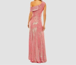 Mac Duggal - Vestido metálico com ombros à mostra e cintura franzida com fenda