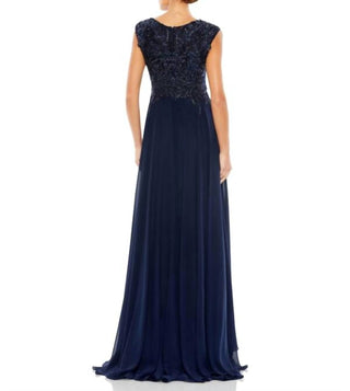 Mac Duggal - Vestido de chiffon com decote em V e corte A, punhos com contas