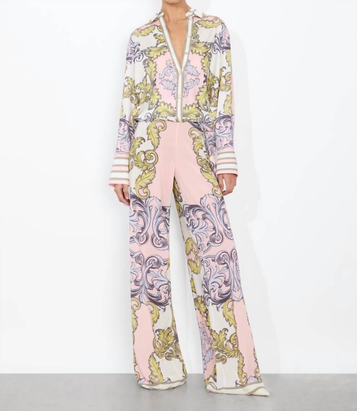 Perfectly tailored and soft to the touch. Introducing the Alice + Olivia Lane Slit Cuff Button Down Shirt in the dreamy Day Dreamer hue, perfect for your next holiday party. This women's button-down shirt features long sleeves and a classic collar, exuding boho chic vibes. Made from quality 100% Polyester, it’s designed with a stylish patterned finish and convenient button closure. For optimal care, please dry clean only.