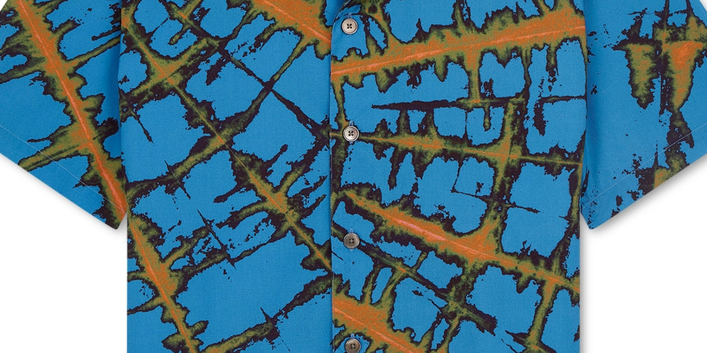 Dê vida ao seu look para o clima quente com o padrão abstrato chamativo estampado nesta confortável camisa de acampamento da Paul Smith | (Liquidação)