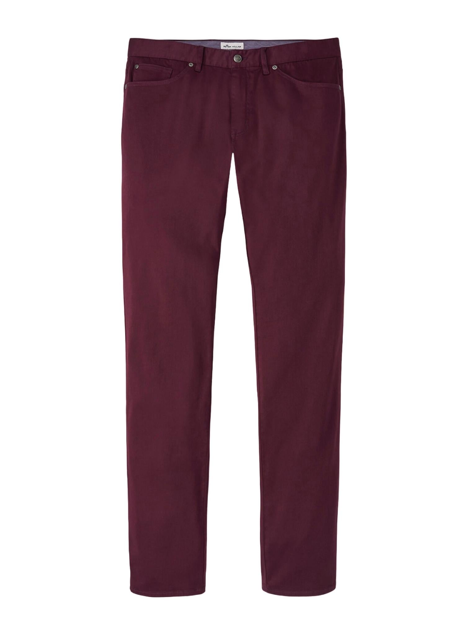 Calça de cinco bolsos com costura interna acabada: 34". Patch de couro Peter Millar na parte de trás do cós. Caimento clássico. Tecido: 67% algodão, 30% modal, 3% elastano. Lavagem à máquina com água fria.