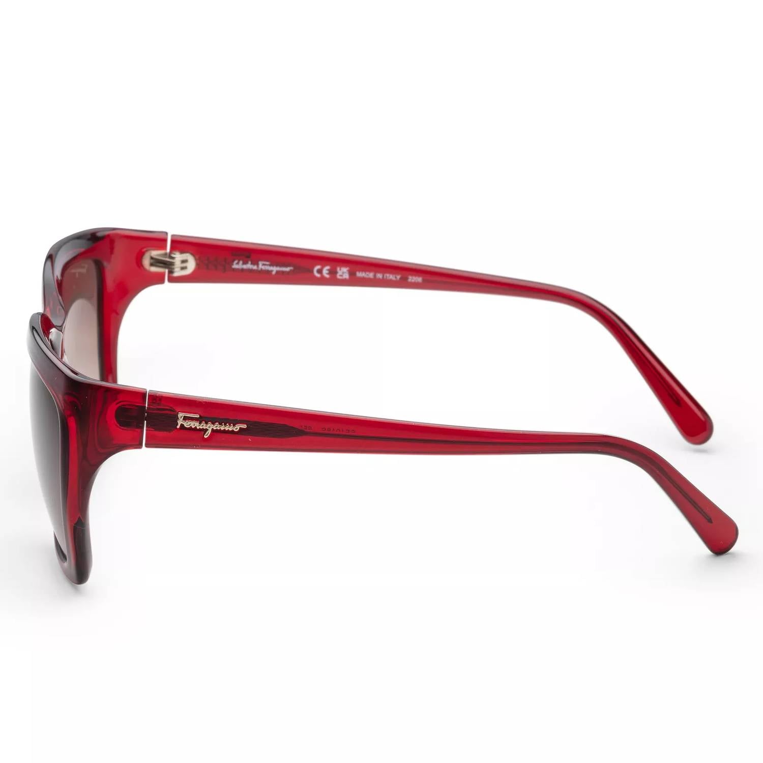 Apresentamos os Óculos de Sol Femininos SF1018S da Salvatore Ferragamo, um exemplo do elegante artesanato italiano. Estes óculos de sol apresentam um design de armação quadrada e aro completo, em uma deslumbrante cor vinho transparente. Feitos inteiramente de plástico durável, oferecem estilo e conforto superiores com dimensões de 59 mm de largura da lente, 17 mm de largura da ponte, 44,5 mm de altura da lente e 140 mm de comprimento da haste. Projetados com lentes na cor marrom e proteção UV categoria 2, são ideais para rostos ovais e redondos. Fabricados na Itália, estes óculos são essenciais para quem gosta de moda.