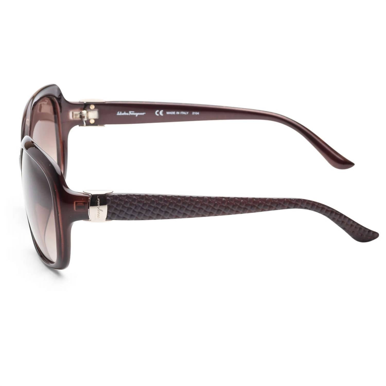 Eleve seu estilo com os Óculos de Sol Femininos SF739SA da Salvatore Ferragamo, criados para combinar moda e funcionalidade. Com uma elegante armação quadrada feita de plástico durável, estes óculos de sol vêm em um sofisticado tom marrom complementado por lentes marrom degradê. Desfrute de proteção total com 100% de cobertura UV. As dimensões são meticulosamente projetadas, com lentes de 59 mm de largura, ponte de 15 mm e comprimento da haste de 135 mm, originários da Itália.