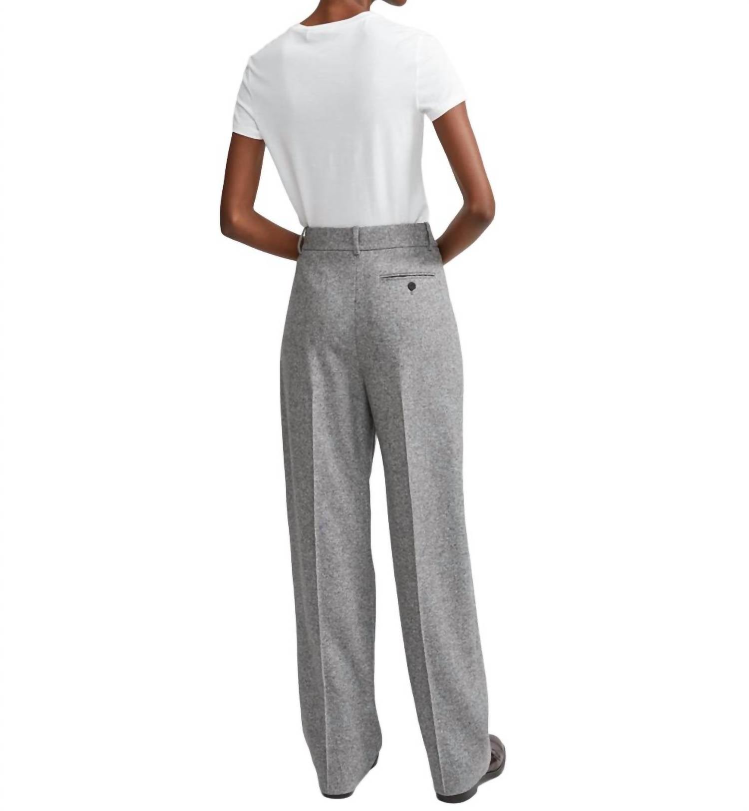 Calça clássica com a tendência de pernas largas. Cós alto. Materiais: 68% lã reciclada, 33% poliéster, 8% seda. Lavagem a seco.