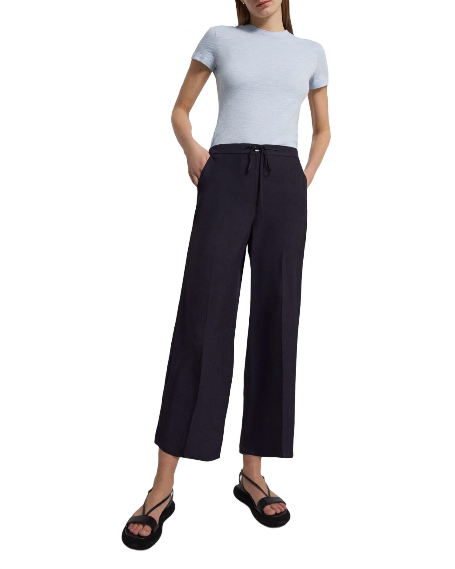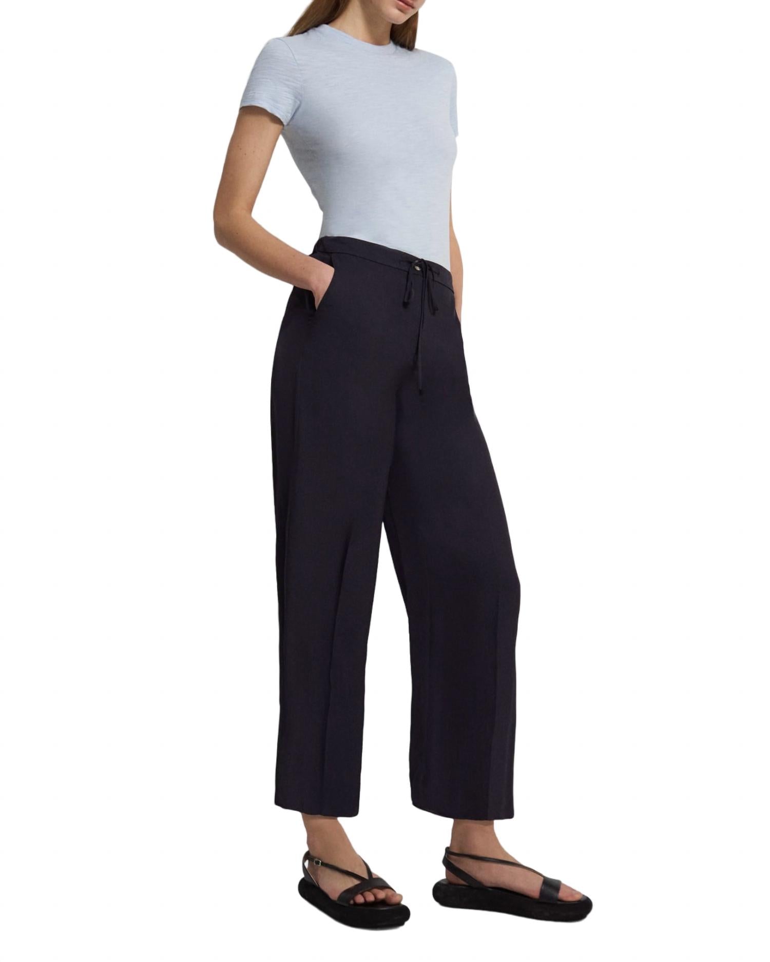 Incremente seu guarda-roupa com este modelo cropped moderno, criado para aliar estilo e praticidade. O caimento confortável permite um uso fácil durante todo o dia. O comprimento perfeito para combinar com seus mules favoritos. Com corte justo e pernas largas. Feito em sarja japonesa com visual lavado e caimento suave, possui fechamento por botão e zíper e cordão na cintura. Cintura média, pernas largas. Comprimento cropped. Fiel ao tamanho. A modelo tem 1,80 m e veste tamanho 38 (EUA). Composição: 100% triacetato. Lavar à máquina com água fria.