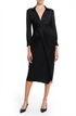 Vestido de cetim feminino Theory com frente torcida e manga comprida, preto, tamanho 2