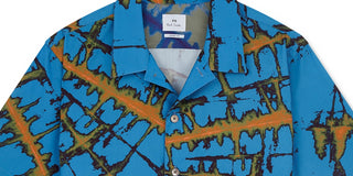 Camisa masculina Paul Smith com estampa abstrata e ajuste regular, tamanho grande, azul