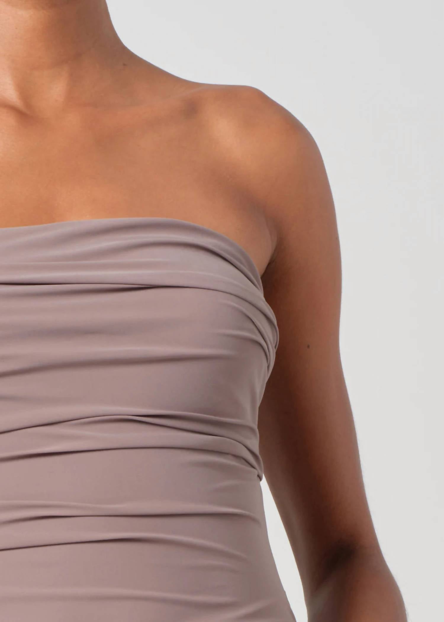Quem não ama um bom body? Descubra o Body Gwyneth Fit da AGOLDE, perfeito para adicionar um toque de elegância ao seu guarda-roupa de primavera. Esta peça tomara que caia, com ombros à mostra, vem em um tom quente de taupe e apresenta uma silhueta justa, realçada por franzidos sutis. Composto por uma mistura de elastano leve e ultramacia, proporciona uma sensação de segunda pele. Fechamento: zíper lateral.