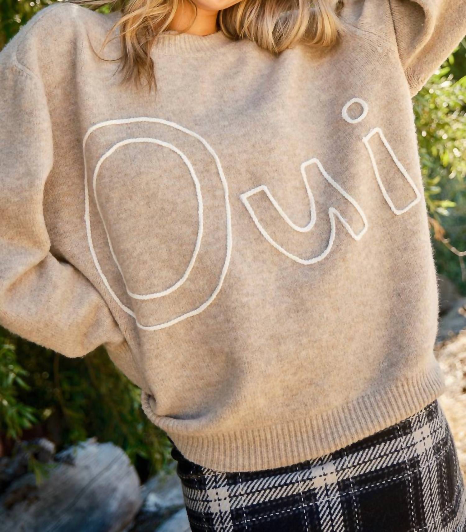 Perfeito para quem ama um toque francês. Possui mangas compridas e um charmoso bordado gráfico com a inscrição "oui" na frente e "yes" nas costas. Confeccionado em uma mistura macia de 94% poliéster, 3% lã e 3% elastano. Este suéter é uma peça ideal para o inverno. Lavar somente à mão.