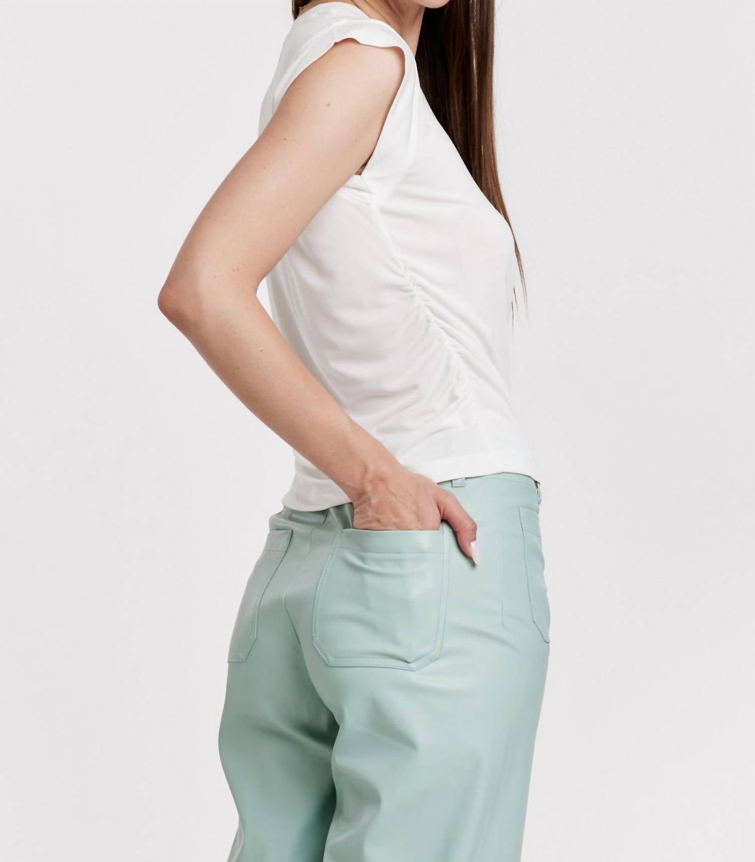 Com tantas maneiras de usá-la, você vai querer esta camiseta musculosa em todas as cores. Apresentamos a camiseta Alora Muscle Tee da Another Love, uma adição chique e confortável ao seu guarda-roupa em branco fresco. Esta camiseta de manga curta ostenta uma gola redonda moderna e franzidos laterais que elevam seu estilo. Confeccionada em uma mistura de 65% Modal e 35% Poliéster, esta blusa pull-on tem comprimento de 60 cm, comprimento de manga de 3,8 cm e busto de 91 cm no tamanho X-S. As instruções de cuidado são simples: lavar à máquina com água fria e secar em temperatura baixa, tornando-a perfeita para uso diário.