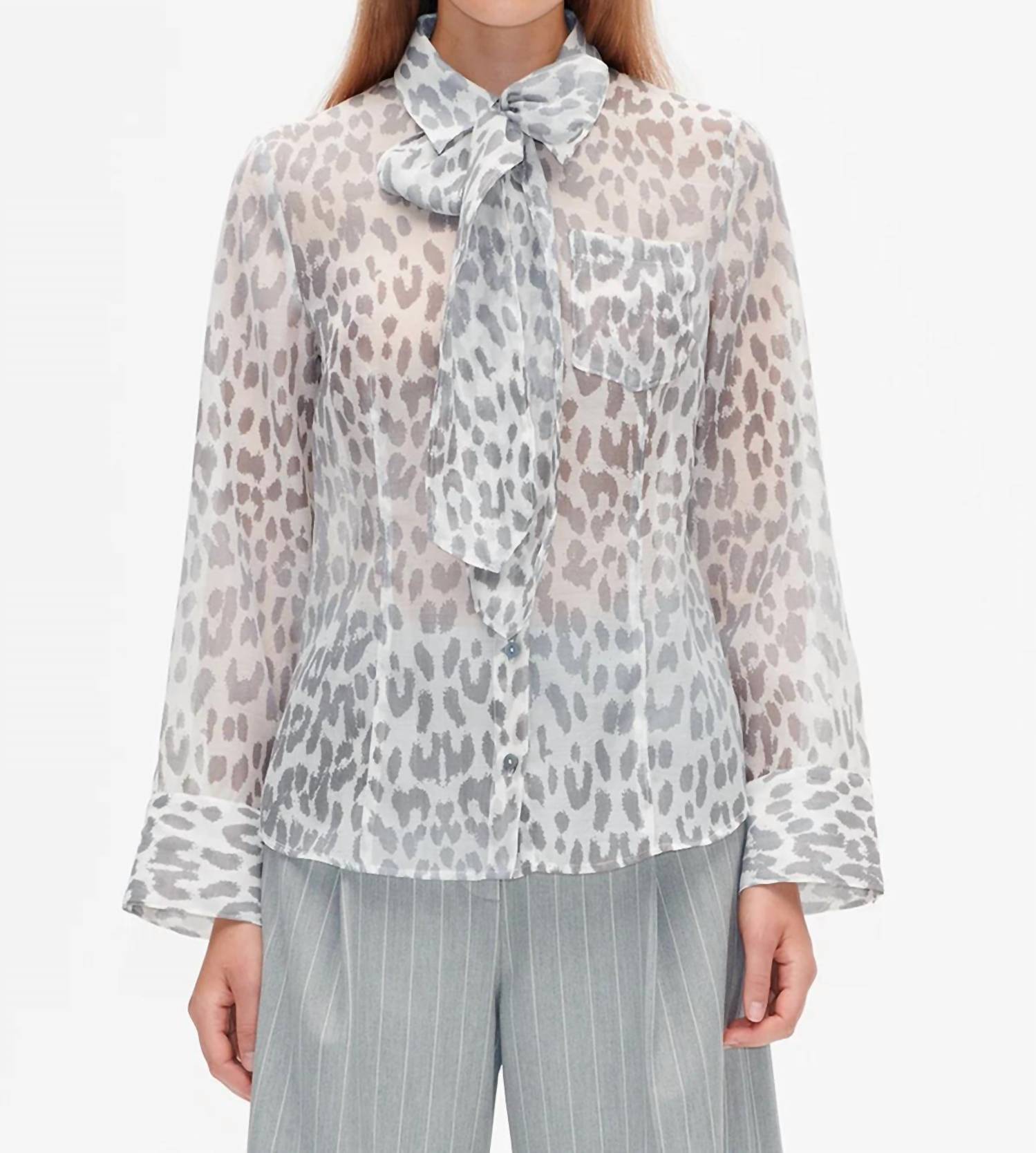 A Camisa Miranda é uma blusa refinada de organza que exala elegância atemporal. Com corte reto e design transparente e sem forro, oferece uma silhueta leve e arejada. O laço no pescoço adiciona um toque de feminilidade, enquanto os punhos grandes com botões conferem um detalhe ousado e elegante.