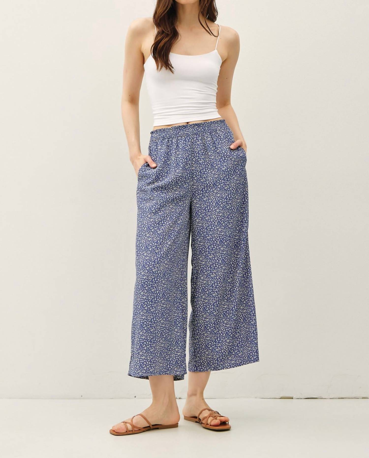 Uma perna reta perfeitamente ajustada que você vai querer em todas as cores! Cintura elástica Bolsos laterais Azul com flores de marfim Comprimento de corte largo