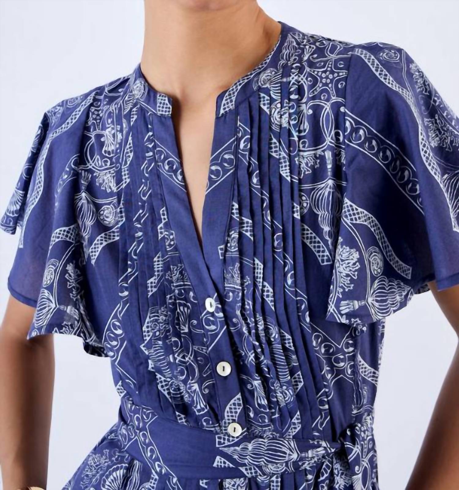 Apresentamos o Vestido Midi Leni com Decote em V da BEYOND by Vera, uma escolha deslumbrante para eventos de verão. Com mangas curtas esvoaçantes e um decote em V elegante, este vestido azul-marinho Sea Bounty apresenta uma composição 100% algodão respirável e cintura marcada para maior elegância. Este vestido evasê oferece um comprimento médio com estampas gráficas exclusivas, perfeito para a tendência maximalista. Projetado com um fecho prático, requer lavagem à mão e deve ser colocado para secar na horizontal.