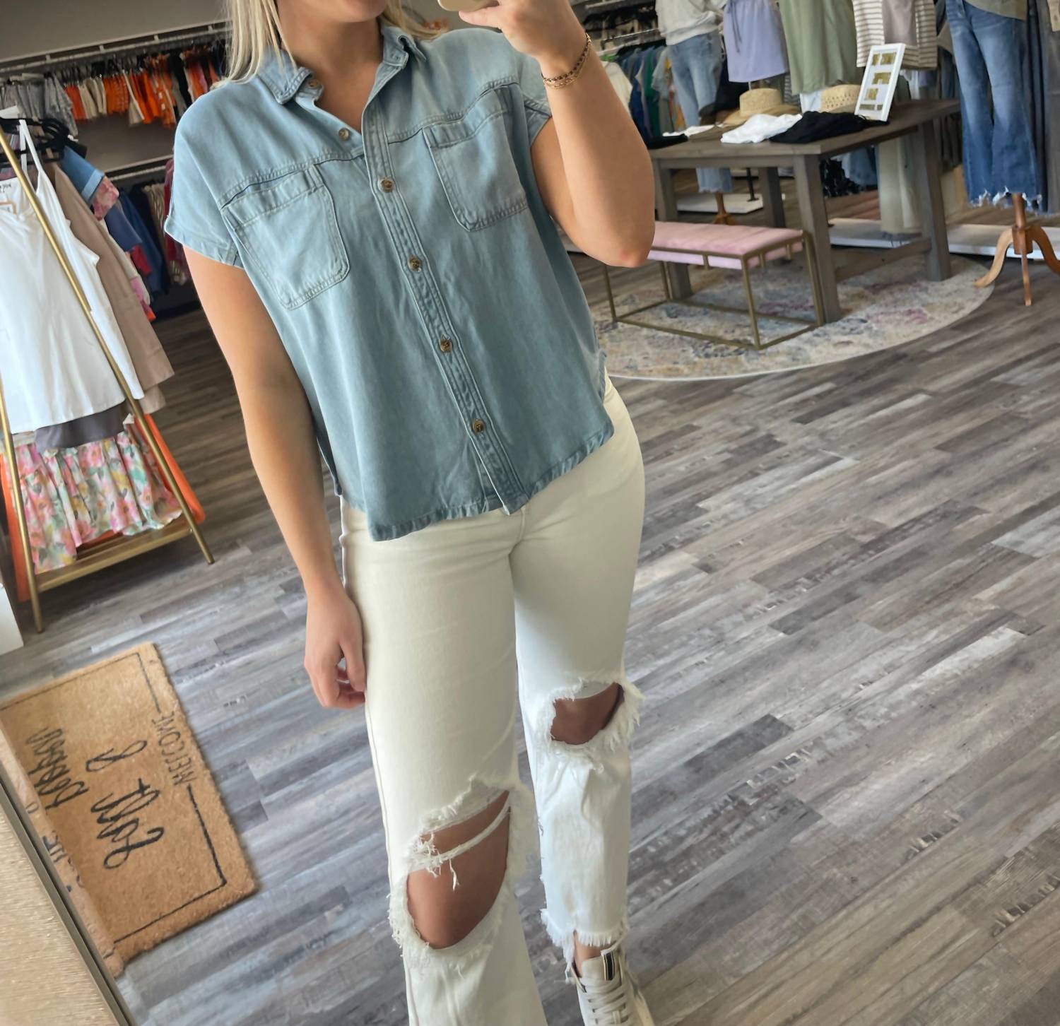 Uma camisa clássica de botões que nunca sai de moda. A Camisa de Manga Curta com Botões da Blu Pepper é uma peça essencial no guarda-roupa, confeccionada em jeans macio e com caimento confortável. Confeccionada em Lyocell, esta camisa oferece respirabilidade e durabilidade, além de apresentar um bolso prático e gola clássica. Fechamento: Botão. Cuidados: Lavar à máquina, secar na horizontal. Ideal para mulheres que buscam uma peça versátil para suas coleções, ela tem um caimento justo e um caimento ligeiramente mais curto, como demonstrado pelo modelo em tamanho M.