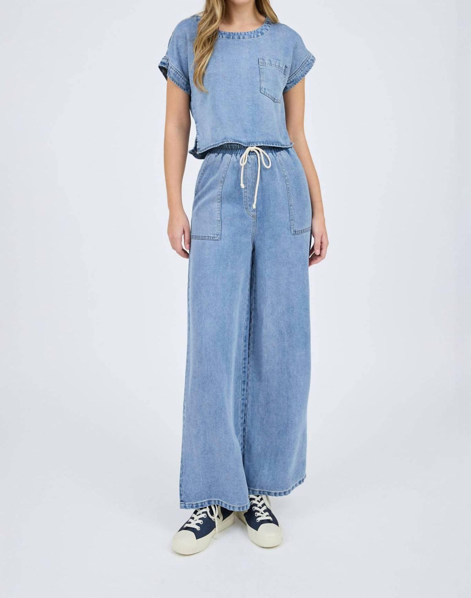 Eleve seu estilo com o Crop Top de Manga Curta com Gola Canoa e Tecido Cambraia Lavada da Blu Pepper, a escolha perfeita para um look minimalista de verão. Este top jeans liso apresenta um decote canoa elegante e é confeccionado em 100% Lyocell para uma sensação leve. Com seu design cropped e bolsos práticos, este top está alinhado com as tendências contemporâneas. Fecho: Puxe para vestir.