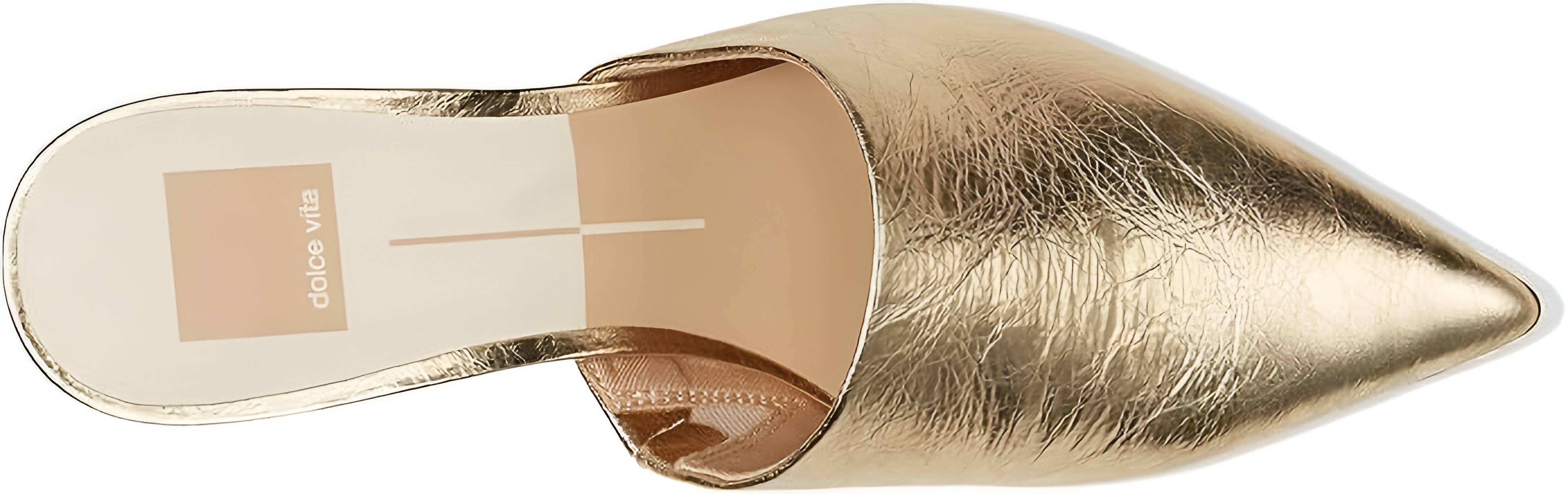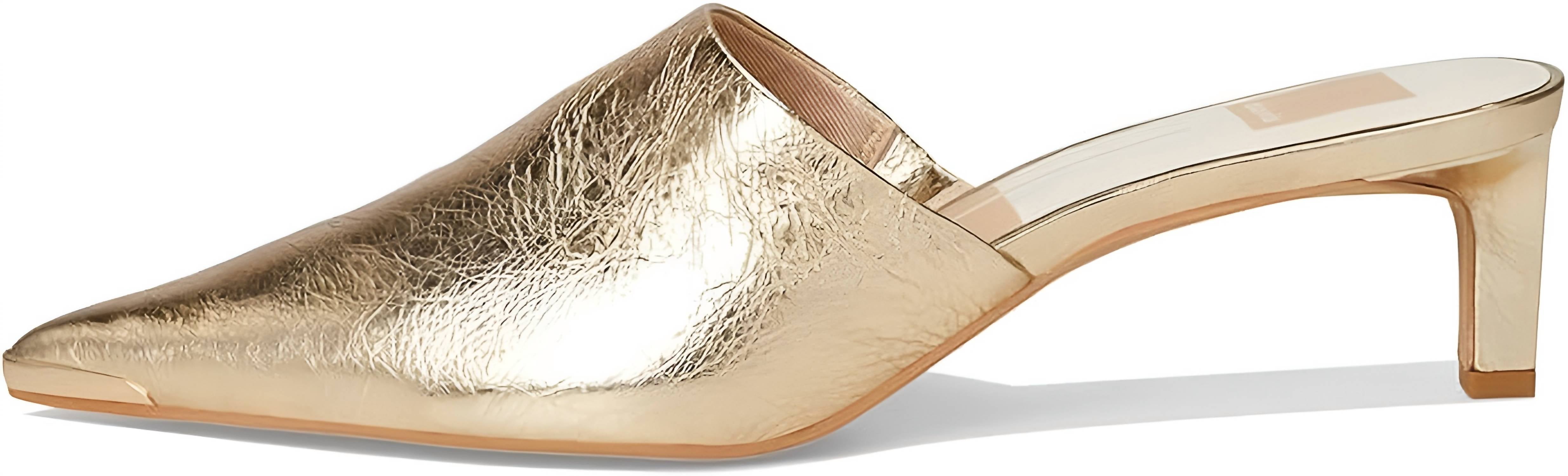 Calce-os e vá! Eleve seu look com as Mules Femininas Lexy de Bico Fino e Salto Kitten da Dolce Vita, projetadas para uma transição perfeita entre estilo e conforto. Confeccionadas em couro dourado envelhecido e salto gatinho de 5 cm, estas mules complementam qualquer look com facilidade. Com cabedal em camurça e design slip-on, as mules contam com solado sintético reciclado e forro têxtil reciclado, uma opção ecologicamente correta. São perfeitas para um jantar de verão e evocam um luxo discreto.