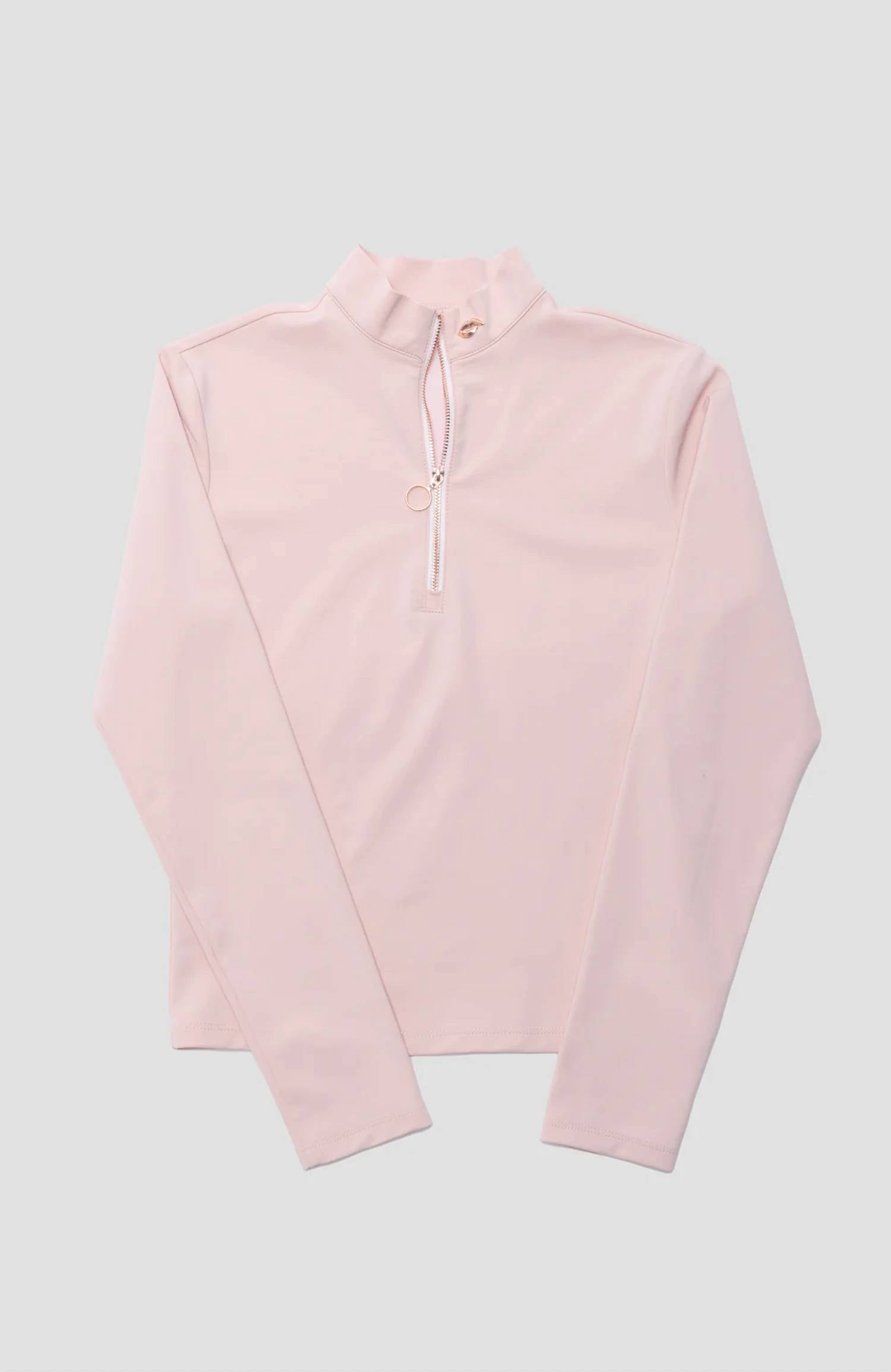 Peça estilosa e funcional, com mangas longas e gola alta. Confeccionada em uma mistura premium de 45% poliéster, 40% algodão e 15% elastano. Oferece elasticidade de 360 graus para liberdade de movimentos. Fabricada nos EUA com tecido italiano. Possui um elegante fecho de zíper em ouro rosé, perfeito para usar em camadas durante os esportes de outono. As instruções de cuidado incluem lavagem à máquina com água morna e secagem na horizontal, garantindo fácil manutenção.
