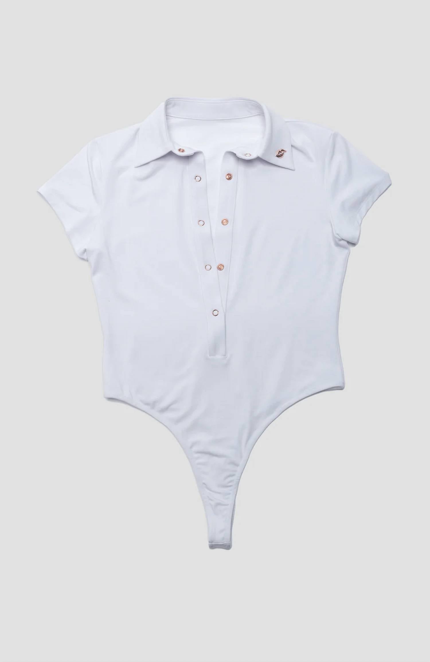 Quem não ama um bom body? Redefina seu jogo com estilo e desempenho. Fabricado nos EUA. Apresenta uma mistura de 92% Micro Modal e 8% Elastano para maciez incomparável e uma silhueta atlética e elegante. Com fecho de pressão e botões de pressão em ouro rosa, ajuste a gola ao seu decote perfeito, garantindo que ela permaneça no lugar durante todos os seus movimentos. As instruções de cuidado recomendam lavar na máquina com água fria e secar na horizontal para maior conforto. Perfeito para sua próxima partida de golfe, pickleball ou tênis.