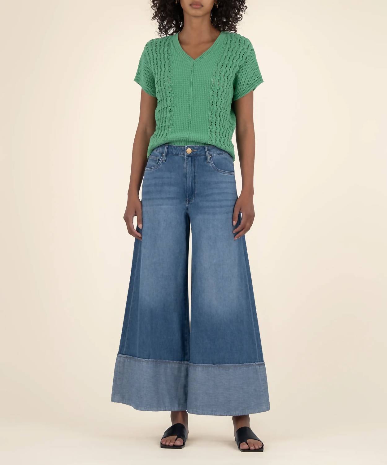 Um suéter atemporal com decote em V que funciona em todas as estações. Apresentamos o colete de malha Tilda da KUT FROM THE KLOTH, uma adição atemporal ao seu guarda-roupa de outono com uma referência à moda dos anos 90. Confeccionado em 100% algodão orgânico, este colete texturizado em verde vibrante apresenta um decote em V clássico para um look elegante para o noivado. Design: Manga longa com fecho pull-on. Cuidados: Recomenda-se lavar à mão e secar no varal para manter a qualidade e o conforto.