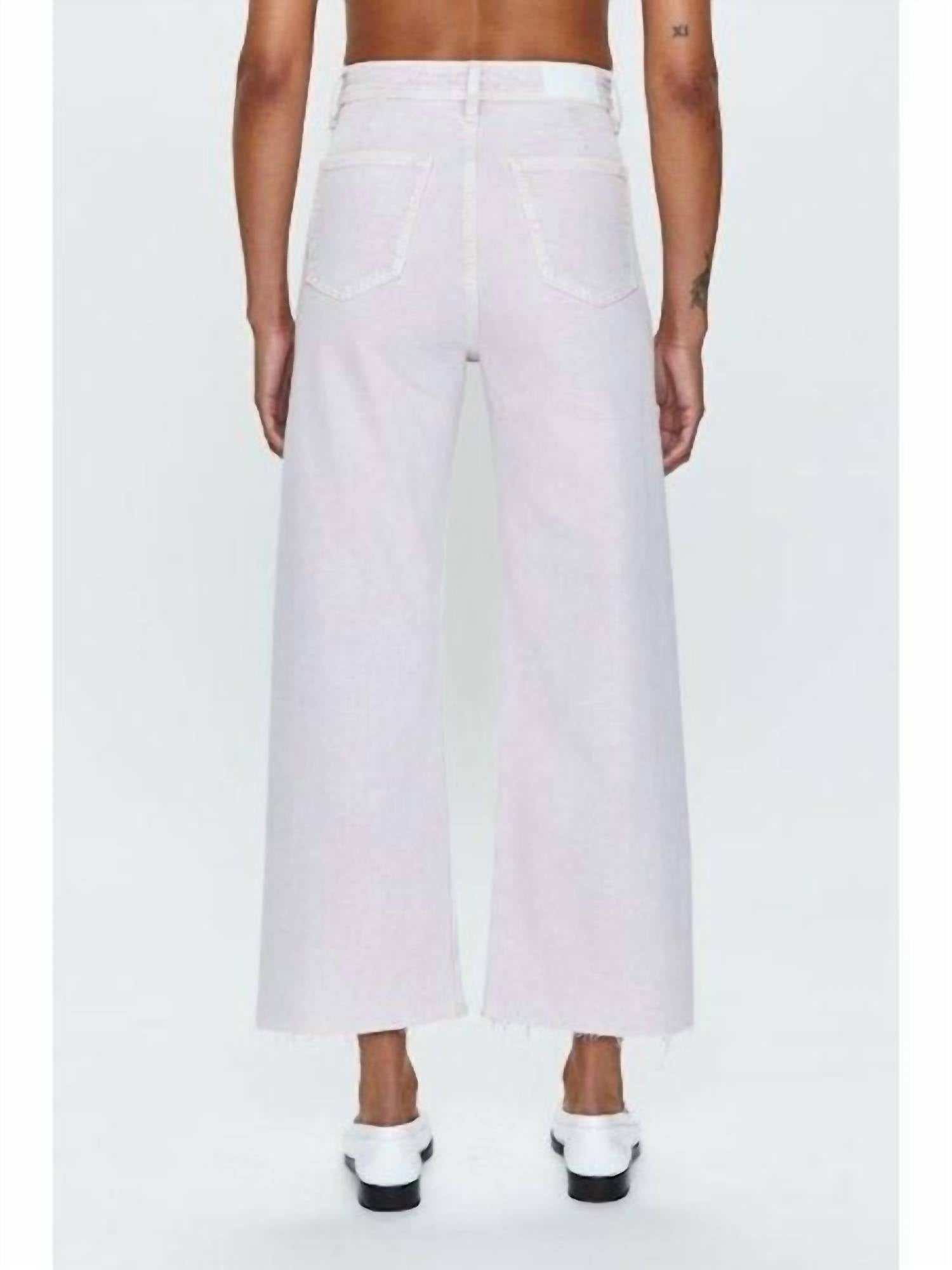 Aposte no estilo sem esforço com a calça Penny High Rise Wide Leg Crop da PISTOLA, uma calça feminina confeccionada em uma confortável mistura de algodão. O corte relaxado apresenta fecho de botão de cintura alta e pernas largas em um vibrante tom lavanda, realçado por costura dupla e bainhas exclusivas em corte tesoura. Elementos adicionais como passadores de cinto, frente lisa e dois bolsos traseiros tornam esta peça prática e estilosa. O cuidado é simples: lave com água fria e deixe secar na horizontal para manter o acabamento polido.