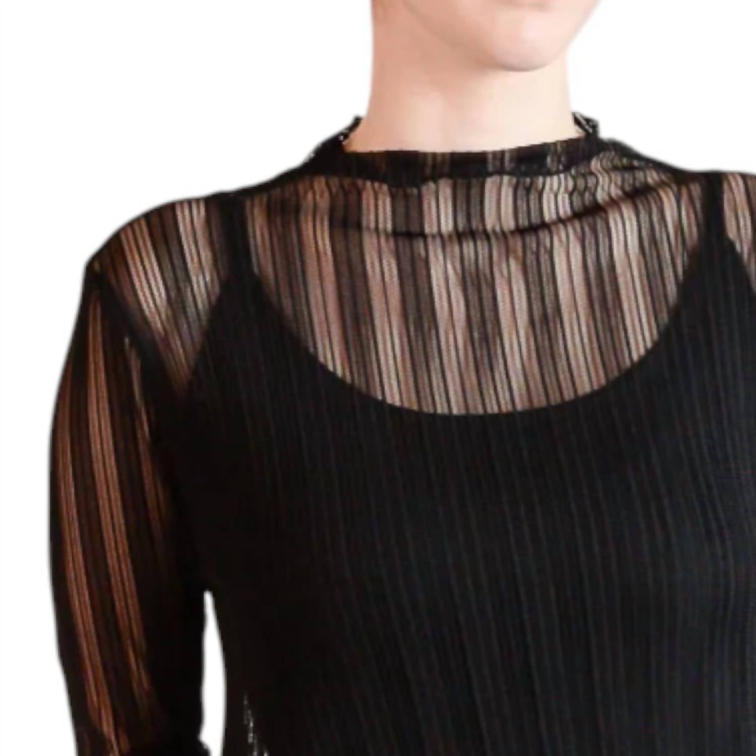 O minivestido perfeito para os meses mais quentes. O Vestido Bellen da Revir é uma escolha requintada para seus eventos noturnos, com um design minimalista elegante em um tom preto clássico. Este minivestido feminino apresenta mangas extralongas e um decote simulado, criando uma silhueta sofisticada que abraça suavemente a cintura. Confeccionado em nylon macio e leve com malha linear estampada, oferece estilo e conforto. Fechamento: Puxe para vestir. Feito para a primavera, este vestido inclui uma camisola acoplada para cobertura total.