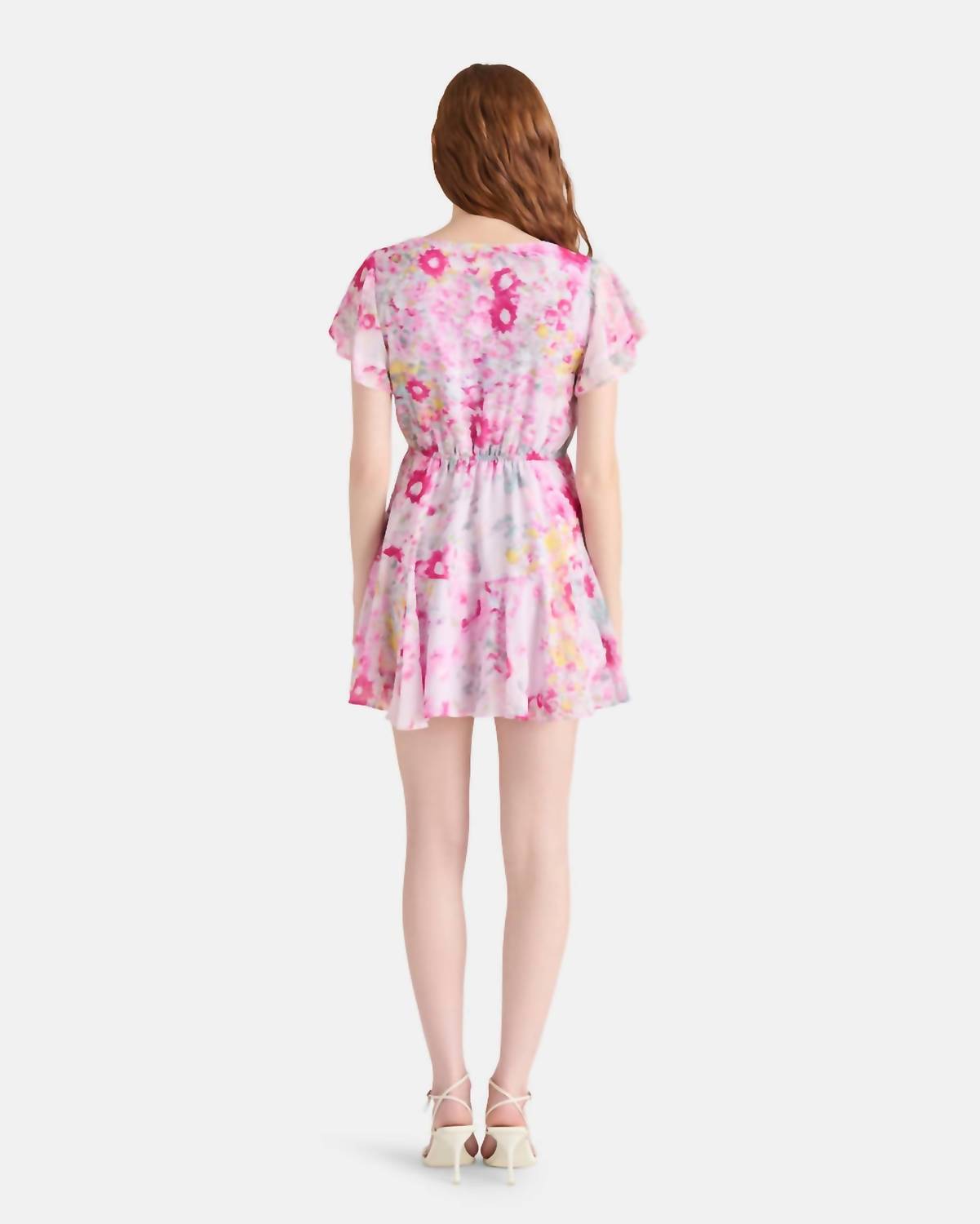 O minivestido perfeito para os meses mais quentes. O Vestido Kirsty da Steve Madden é confeccionado em chiffon 100% poliéster leve, projetado para um look primaveril chique e descontraído, com estampa floral vibrante. Com mangas curtas e cós elástico ajustado, ele cria uma silhueta evasê elegante, completa com decote em V e detalhe de amarração. Este minivestido, feito para um estilo boho chic de férias, é importado e possui um fecho prático. Fácil de cuidar, seguindo as instruções de lavagem à máquina com água fria.
