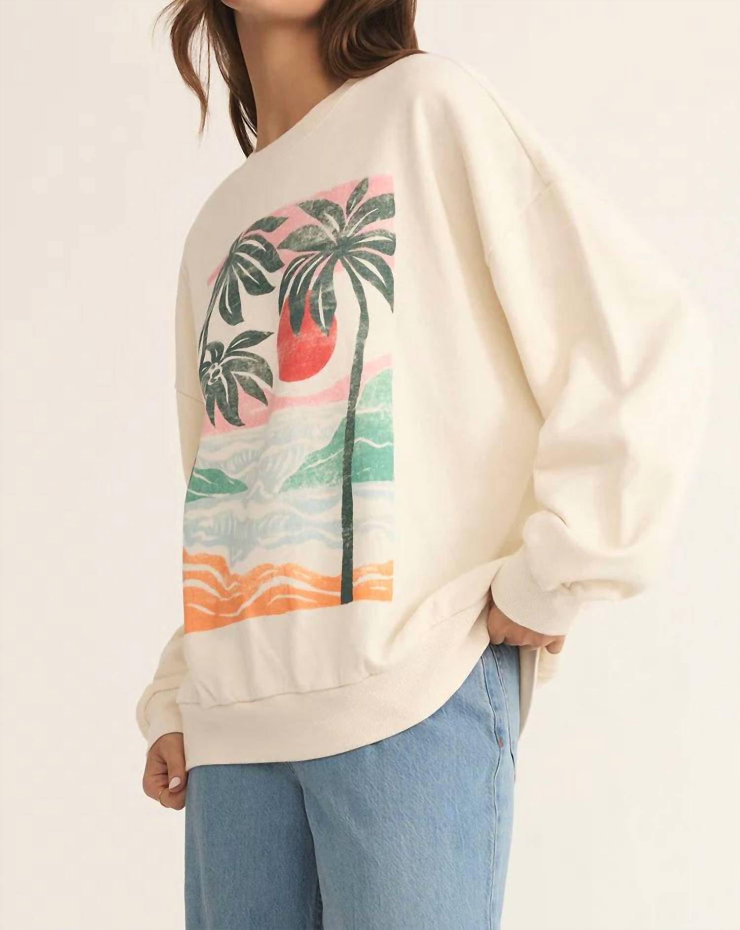 Eleve seu guarda-roupa casual com o Moletom High Tide Sunday da Z Supply, um item essencial para os amantes da praia. Esta blusa oversized de gola redonda apresenta mangas compridas e uma estampa gráfica vibrante em tom sal marinho, confeccionada em fleece 100% algodão ultramacio. É a escolha ideal para as férias de outono e noites descontraídas. Cuidados: Lavável à máquina; tipo de fecho: Pull-on.