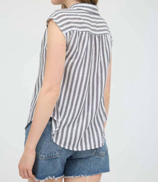 Blu Pepper - Camisa de botões com gola listrada e manga curta
