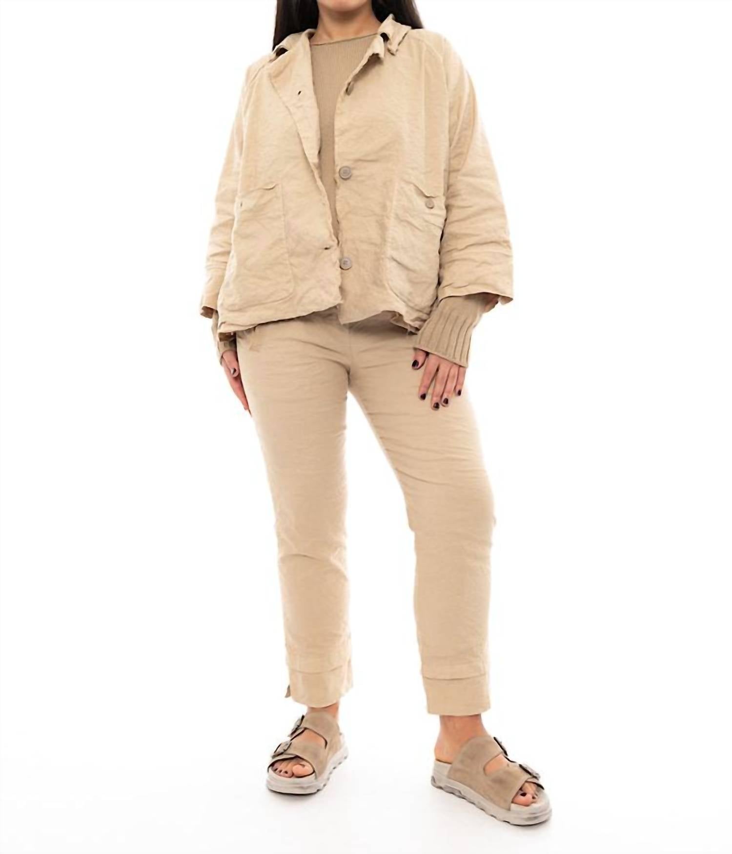 Descubra a Jaqueta de Algodão Amassado da Aequamente, um item essencial para o seu guarda-roupa de outono. Esta jaqueta casual apresenta mangas longas e largas e um decote clássico com gola, confeccionada em tecido misto de algodão amassado para uma textura única. Sua composição inclui 59% algodão, 28% linho, 9% MF e 4% elastano, com forro 100% algodão para maior conforto. Fechamento: Botão. Fabricado na Itália. Cuidados: Lavar à mão somente com água fria, não usar alvejante, não secar na secadora, passar a ferro em temperatura baixa, pode ser lavado a seco.