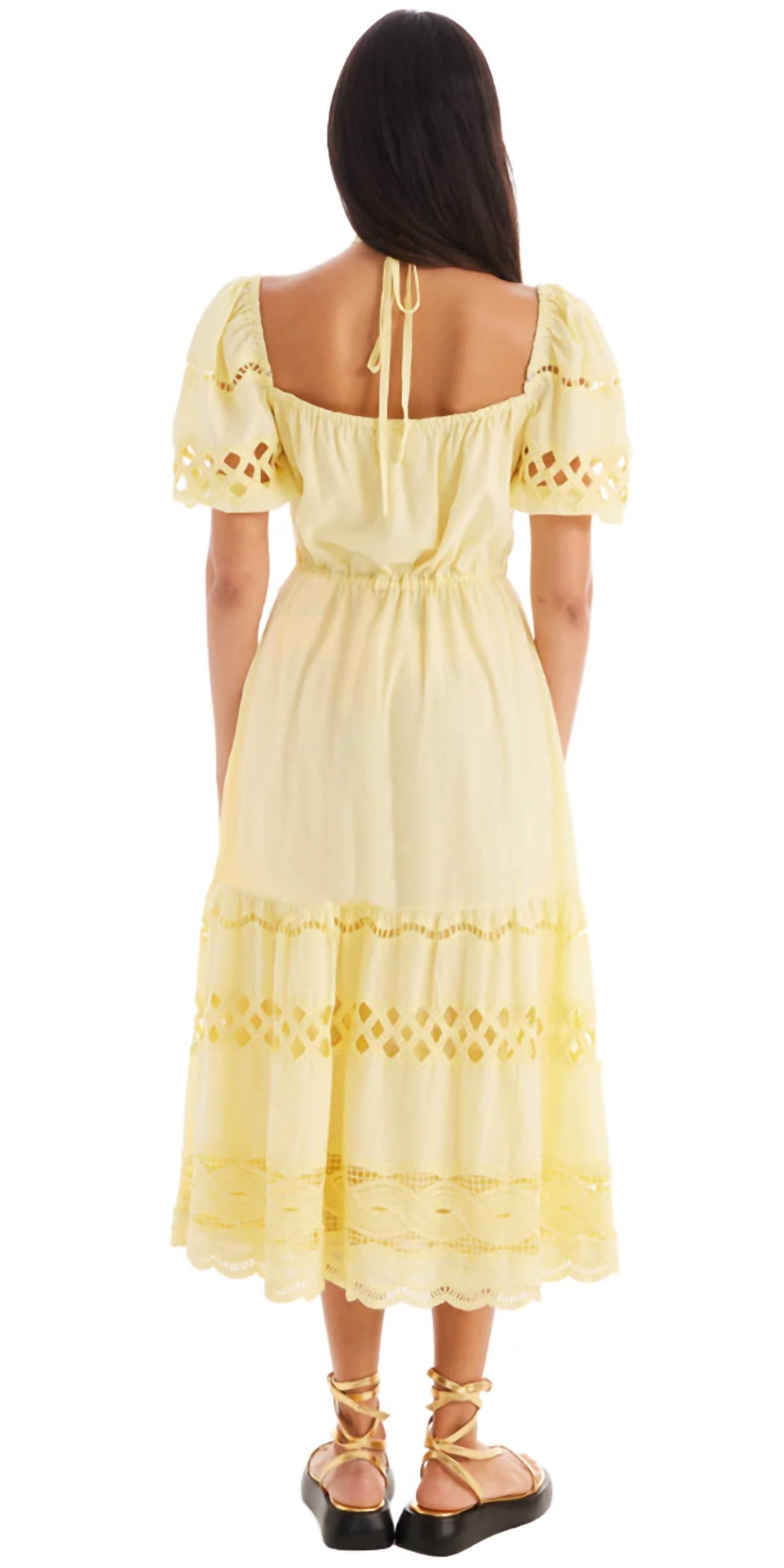 Um vestido midi tão versátil que suas opções de uso são infinitas. Abrace a estação com o Vestido Midi Allison Emilia da ALLISON NEW YORK, a escolha perfeita para o chique das férias. Este vestido em tom manteiga apresenta mangas curtas e um corte em A elegante, confeccionado inteiramente em algodão macio e leve, com detalhes em ilhós bordados intrincados. Projetado para o conforto, o vestido inclui detalhes elásticos nos ombros e um cordão ajustável na cintura, valorizando a silhueta em todos os pontos. Feito em 100% algodão, recomenda-se lavagem a seco apenas para manter a peça impecável.