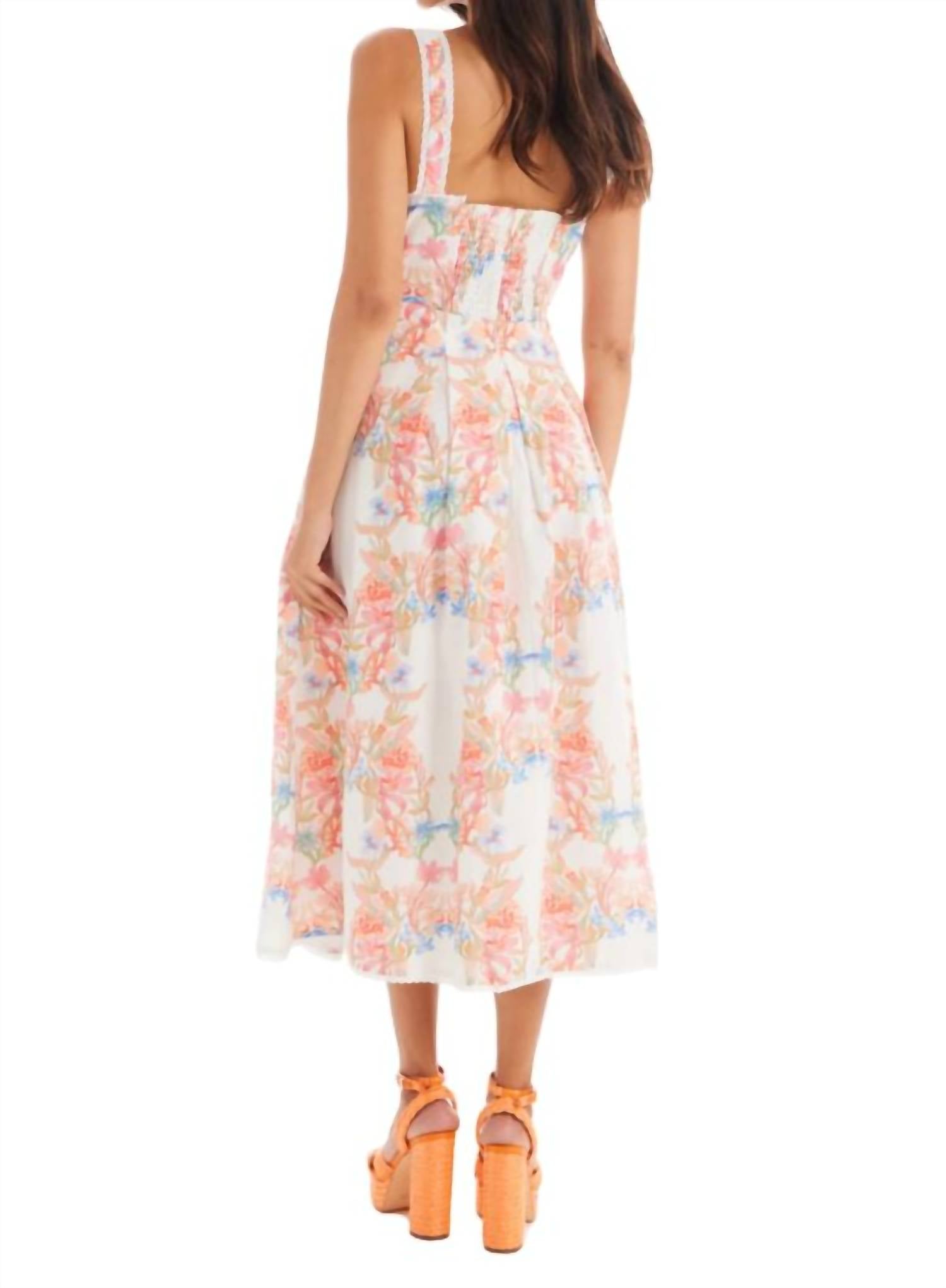 Um vestido midi tão versátil que suas opções de uso são infinitas. Apresentamos o Vestido Midi Juliana da ALLISON NEW YORK, uma peça deslumbrante perfeita para tudo, de festas no jardim a férias tropicais. Este vestido sem mangas é confeccionado em mistura de algodão e apresenta uma elegante estampa floral em arco, com decote quadrado e alças largas para uma silhueta justa e feminina. Desenhada em corte A, a saia plissada é totalmente forrada para maior conforto e finalizada com um prático fecho de zíper no centro das costas. Mantenha seu look suave e com cara de verão com saltos e joias delicadas. Instruções de cuidado: Lavar à mão e secar na horizontal. A modelo tem 1,75 m e veste tamanho P.