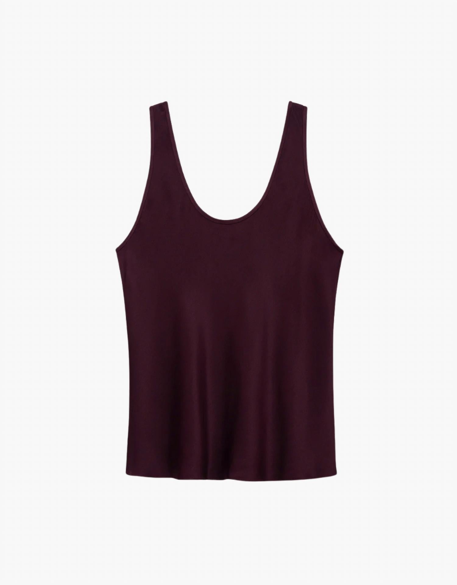 A regata perfeita para as estações mais quentes. O ANINE BING Lea Top é uma peça sofisticada sem mangas, confeccionada em luxuoso charmeuse de seda dupla face de 21 mm, com um decote redondo elegante para um toque de elegância. Com seu tom bordô sólido, este top é desenhado em viés para criar um caimento delicado, perfeito para um look refinado. Feito inteiramente de 100% seda, vem da China e possui fecho pull-on para facilitar o uso. Para maior cuidado, recomenda-se a lavagem a seco para manter o tecido acetinado leve.