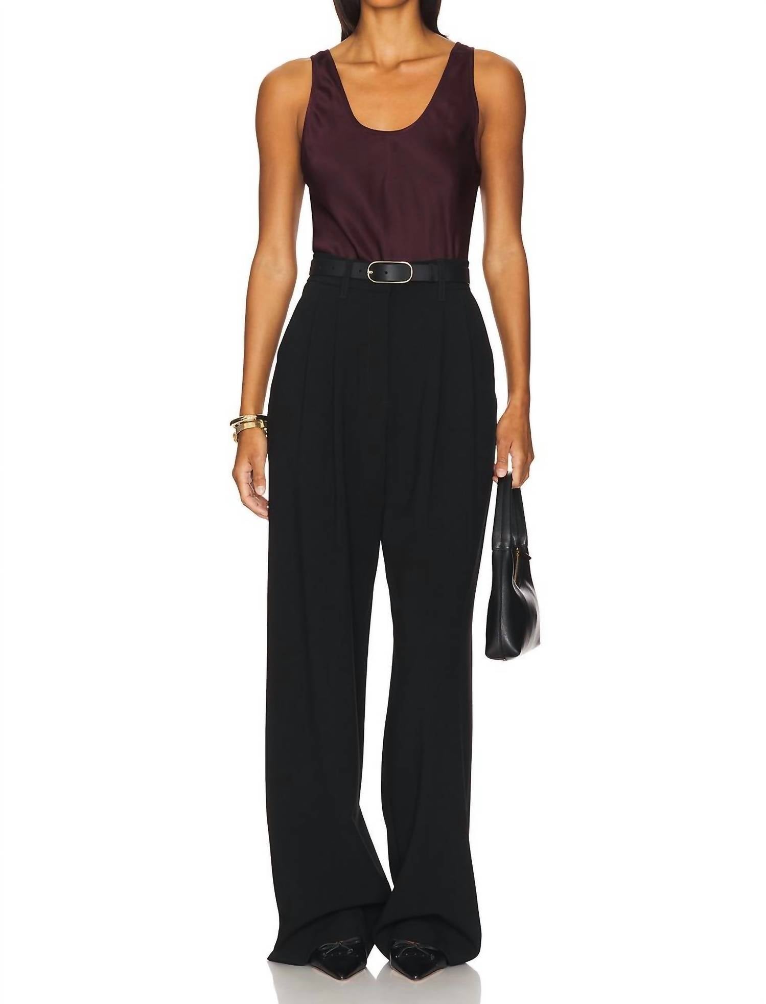 O ANINE BING Lea Top é uma peça sofisticada sem mangas, confeccionada em luxuoso charmeuse de seda dupla face de 21 mm, com um decote redondo elegante para um toque de elegância. Com seu tom bordô sólido, este top é desenhado em viés para criar um caimento delicado, perfeito para um look refinado. Feito inteiramente de 100% seda, vem da China e possui fecho pull-on para facilitar o uso. Para maior cuidado, recomenda-se a lavagem a seco para manter o tecido acetinado leve.