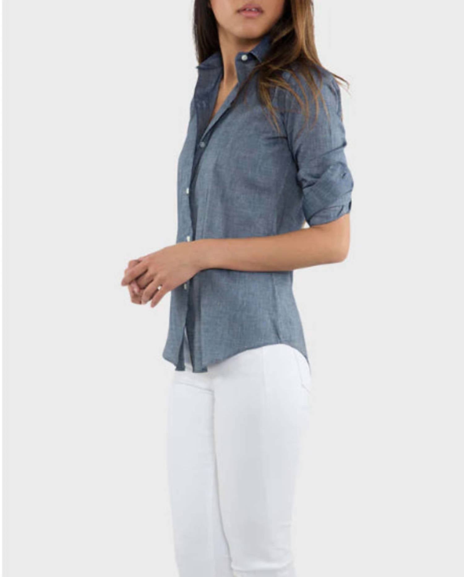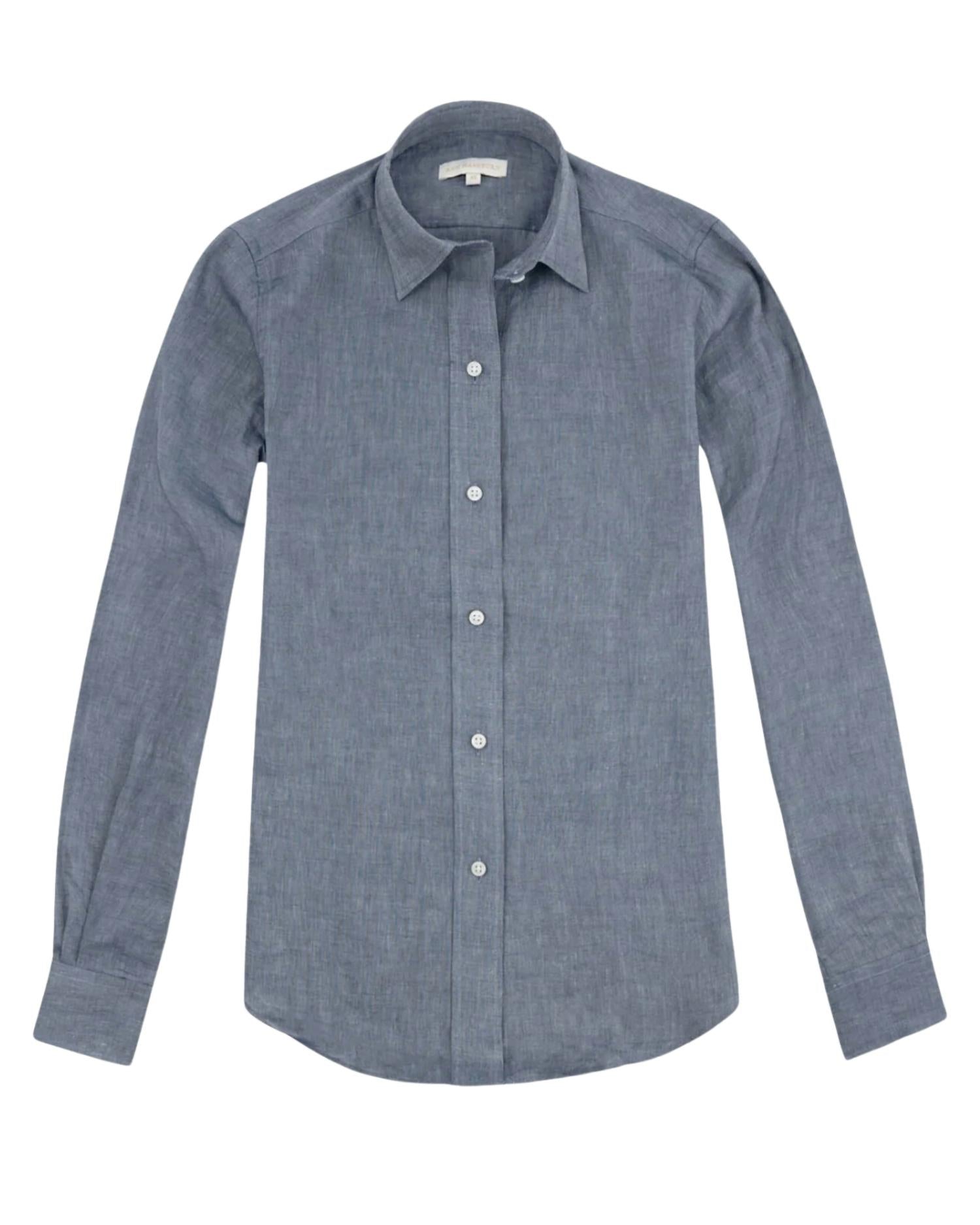 Perfeitamente ajustado e macio ao toque. Apresentamos a Camisa Icon da Ann Mashburn, um item essencial de vendas em atemporal Chambray Azul Cotolino. Confeccionada com mangas longas em uma mistura italiana premium de 51% linho e 49% algodão, esta camisa oferece conforto e estilo. Feita em Honduras, apresenta gola clássica e corte slim com fecho de botão. Para melhor cuidado, lave na máquina com água fria e seque no varal para manter o belo desbotamento índigo.